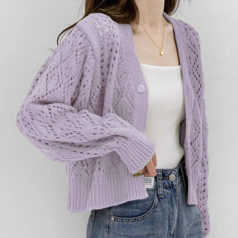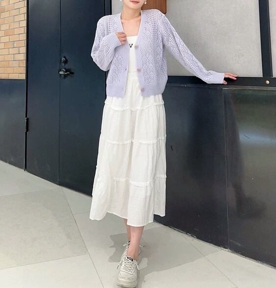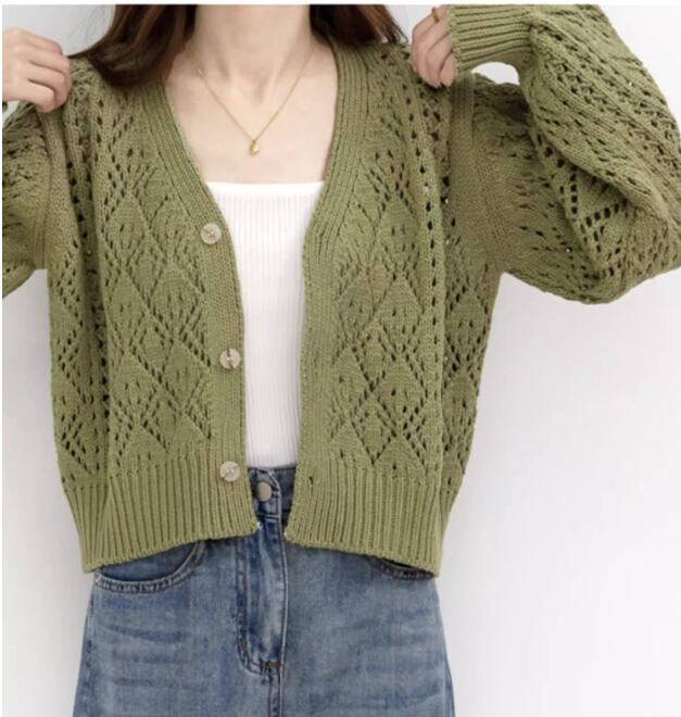 透かし編みが美しいVネックカーディガン。 ふわりとした袖とクロップド丈が、トレンド感と女性らしさを演出します。 ボタンを留めてきちんと着こなしたり、羽織ってカジュアルダウンしたりと、着こなしの幅も広がります。 《カラー》 カーキ/パープル 《サイズ》 S 肩幅42cm 胸囲100cm 着丈46cm M 肩幅43cm 胸囲102cm 着丈47cm L 肩幅44cm 胸囲104cm 着丈48cm ※採寸方法により1~3cmの誤差がある場合がございます。 ◇人気のおすすめアイテムをもっと見る https://shop.harmonique.net/categories/5911182 ◇商品を購入する前にこちらの【ご購入前に必ずお読みください】をご確認の上お買い求めください。 https://shop.harmonique.net/blog/2024/06/25/010751 《注意事項》 *harmoniqueではお客様からのご注文を受け、お客様の商品を製作・取り寄せしております。 *基本的にお取り寄せ商品となるため、発送までに《1~3週間前後》お時間をいただいております。 *ご覧いただいているPCやスマートフォンの画面により実物と多少色合いが異なる場合がございます。 *イメージ違いやサイズ違い等、その他お客様都合によりますキャンセル・返品交換はご遠慮ください。 トップページはこちら https://shop.harmonique.net/