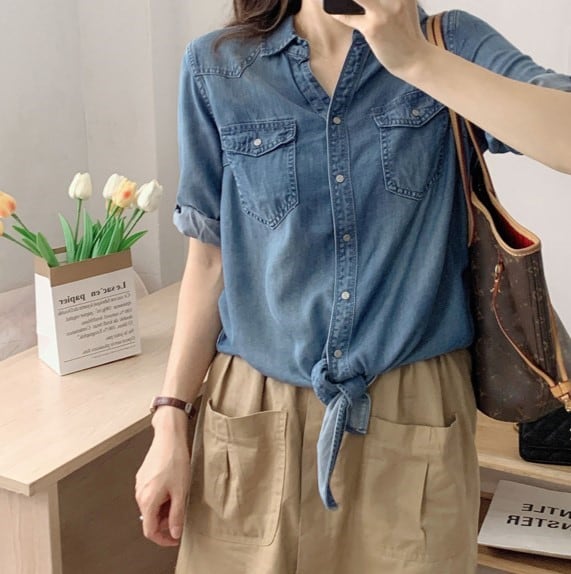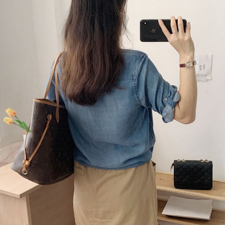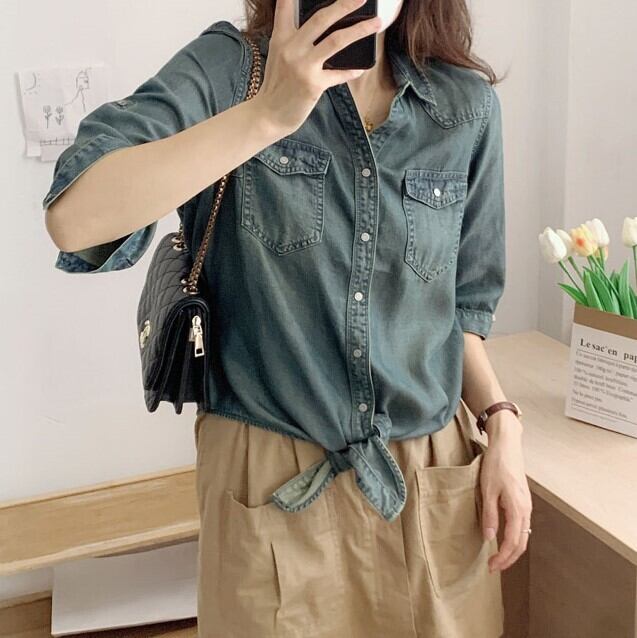 フロントで結べるデニムシャツは、カジュアルなシーンで活躍する一枚です。 ウエストにポイントを作って着こなすことで、スタイルアップ効果も期待できます。 カラーは味のある2色を展開しておりシンプルながらもこなれた印象を与え、様々なボトムスと相性抜群です。 《カラー》 ネイビー/ヴィンテージブルー 《サイズ》 S : 肩幅38cm 胸囲96cm 着丈55cm 袖丈36cm M : 肩幅39cm 胸囲100cm 着丈56cm 袖丈37cm L : 肩幅40cm 胸囲104cm 着丈56.5cm 袖丈38cm XL : 肩幅41cm 胸囲108cm 着丈57cm 袖丈39cm ※採寸方法により1~3cmの誤差がある場合がございます。 《素材》 リヨセル100% ◇人気のおすすめアイテムをもっと見る https://shop.harmonique.net/categories/5911182 ◇商品を購入する前にこちらの【ご購入前に必ずお読みください】をご確認の上お買い求めください。 https://shop.harmonique.net/blog/2024/06/25/010751 《注意事項》 *harmoniqueではお客様からのご注文を受け、お客様の商品を製作・取り寄せしております。 *基本的にお取り寄せ商品となるため、発送までに《1~3週間前後》お時間をいただいております。 *ご覧いただいているPCやスマートフォンの画面により実物と多少色合いが異なる場合がございます。 *イメージ違いやサイズ違い等、その他お客様都合によりますキャンセル・返品交換はご遠慮ください。 トップページはこちら https://shop.harmonique.net/