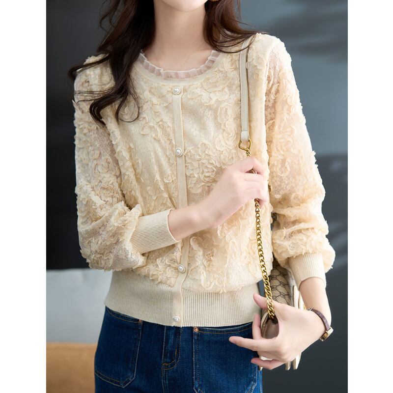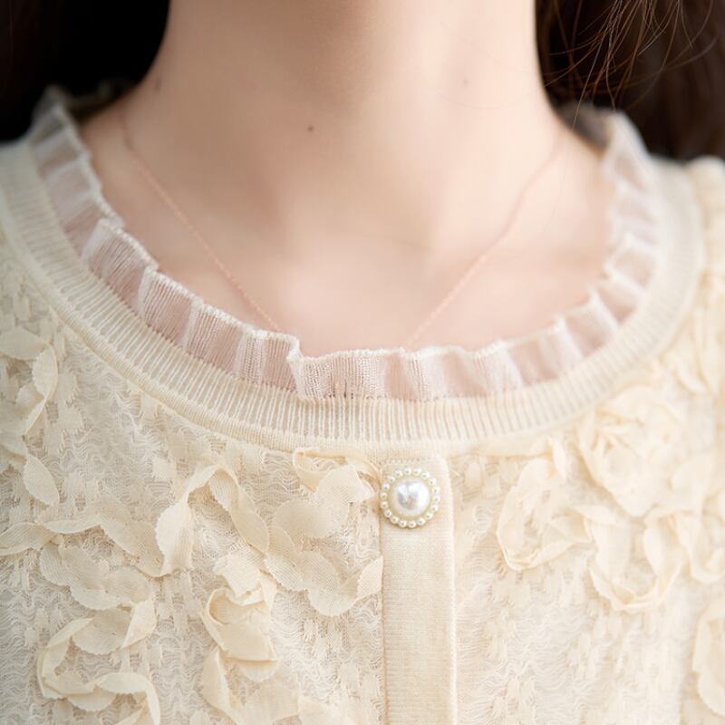 レースの華やかさとラウンドネックデザインが、上品で女性らしい印象を与えます。 ジーンズのようなカジュアルなボトムスと合わせれば、デイリーユースにぴったり。 スカートと合わせれば、フェミニンなスタイルにも対応できる、着回し力の高いアイテムです。 《サイズ》 S : 肩幅35cm 胸囲96cm 着丈58.5cm 袖丈59cm M : 肩幅35.5cm 胸囲98cm 着丈59cm 袖丈59.5cm L : 肩幅36cm 胸囲100cm 着丈59.5cm 袖丈60cm XL : 肩幅36.5cm 胸囲102cm 着丈60cm 袖丈60.5cm 2XL : 肩幅37cm 胸囲104cm 着丈60.5cm 袖丈61cm ※採寸方法により1~3cmの誤差がある場合がございます。 ◇人気のおすすめアイテムをもっと見る https://shop.harmonique.net/categories/5911182 ◇商品を購入する前にこちらの【ご購入前に必ずお読みください】をご確認の上お買い求めください。 https://shop.harmonique.net/blog/2024/06/25/010751 《注意事項》 *harmoniqueではお客様からのご注文を受け、お客様の商品を製作・取り寄せしております。 *基本的にお取り寄せ商品となるため、発送までに《1~3週間前後》お時間をいただいております。 *ご覧いただいているPCやスマートフォンの画面により実物と多少色合いが異なる場合がございます。 *イメージ違いやサイズ違い等、その他お客様都合によりますキャンセル・返品交換はご遠慮ください。 トップページはこちら https://shop.harmonique.net/