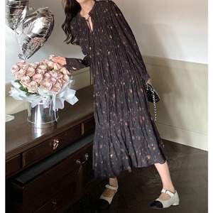 小花柄Aラインフレンチワンピース W01200