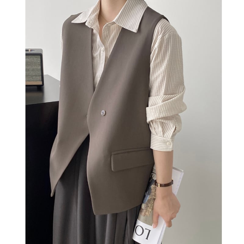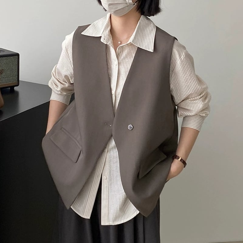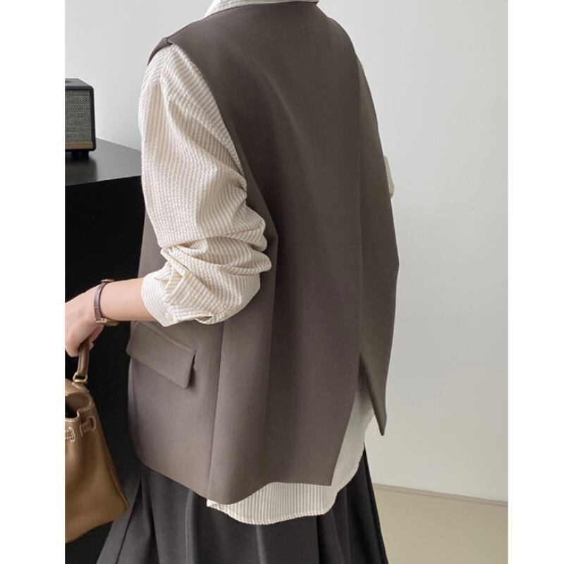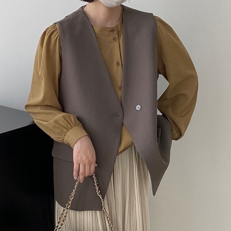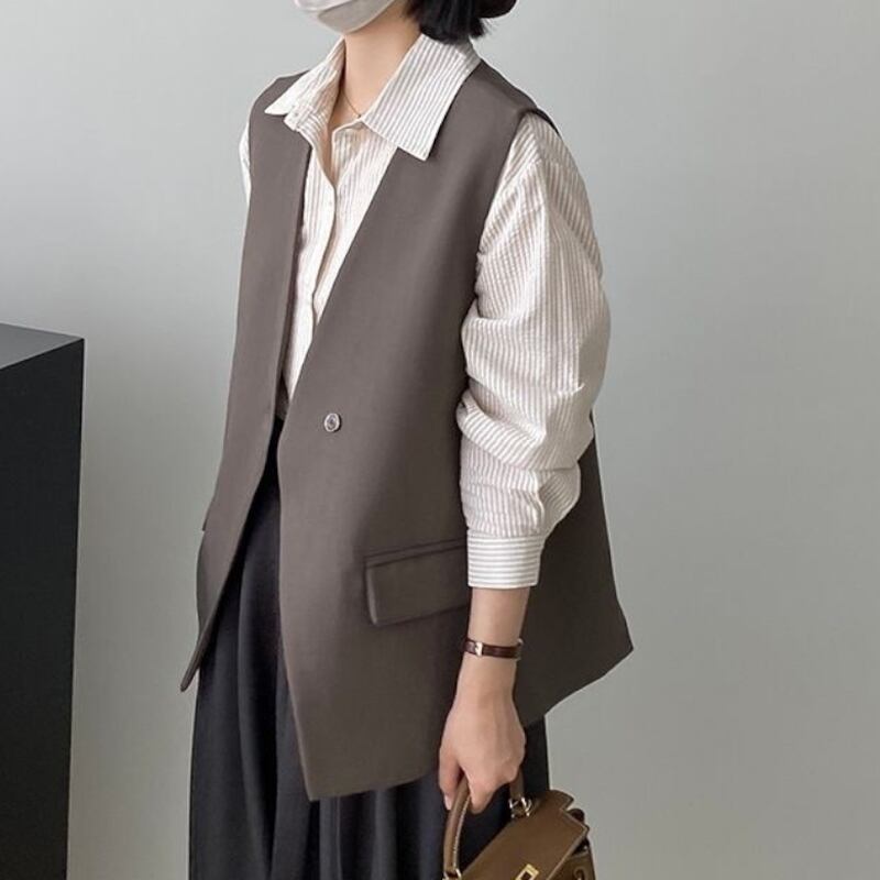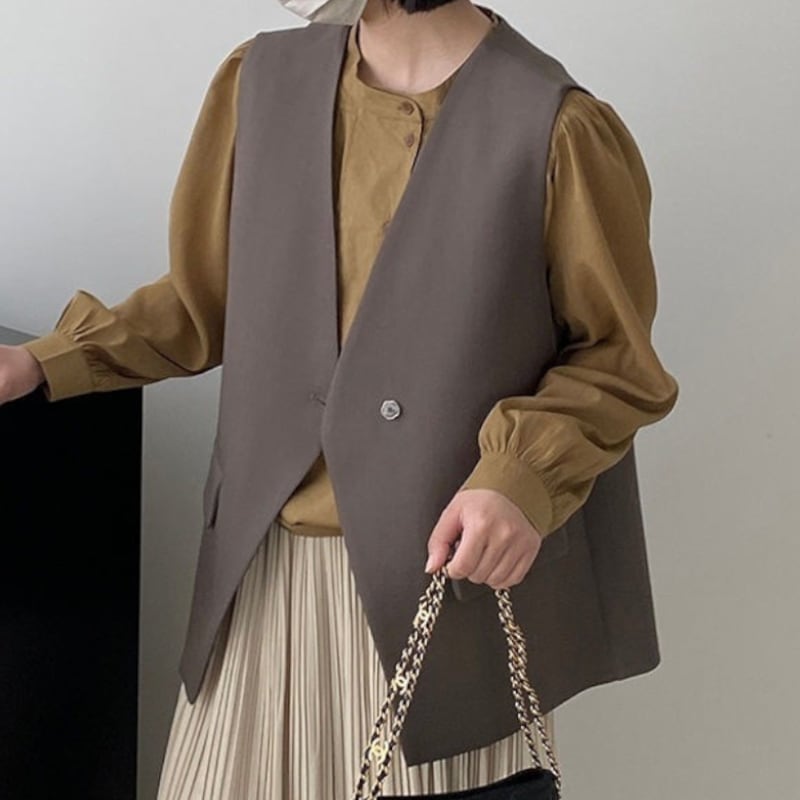 深いVネックデザインが目を惹く、ノースリーブAラインベスト。 すっきりとしたシルエットが、体型をカバーしながら上品な雰囲気を演出します。 カジュアルなシャツやブラウスとの相性抜群の一枚です。 《カラー》 ブラウン/ブラック 《サイズ》 M : 肩幅39cm 胸囲108cm 着丈68cm L : 肩幅40cm 胸囲110cm 着丈69cm XL : 肩幅41cm 胸囲112cm 着丈70cm 2XL : 肩幅420cm 胸囲114cm 着丈71cm ※採寸方法により1~3cmの誤差がある場合がございます。 《素材》 ポリエステル ◇人気のおすすめアイテムをもっと見る https://shop.harmonique.net/categories/5911182 ◇商品を購入する前にこちらの【ご購入前に必ずお読みください】をご確認の上お買い求めください。 https://shop.harmonique.net/blog/2024/06/25/010751 《注意事項》 *harmoniqueではお客様からのご注文を受け、お客様の商品を製作・取り寄せしております。 *基本的にお取り寄せ商品となるため、発送までに《1~3週間前後》お時間をいただいております。 *ご覧いただいているPCやスマートフォンの画面により実物と多少色合いが異なる場合がございます。 *イメージ違いやサイズ違い等、その他お客様都合によりますキャンセル・返品交換はご遠慮ください。 トップページはこちら https://shop.harmonique.net/