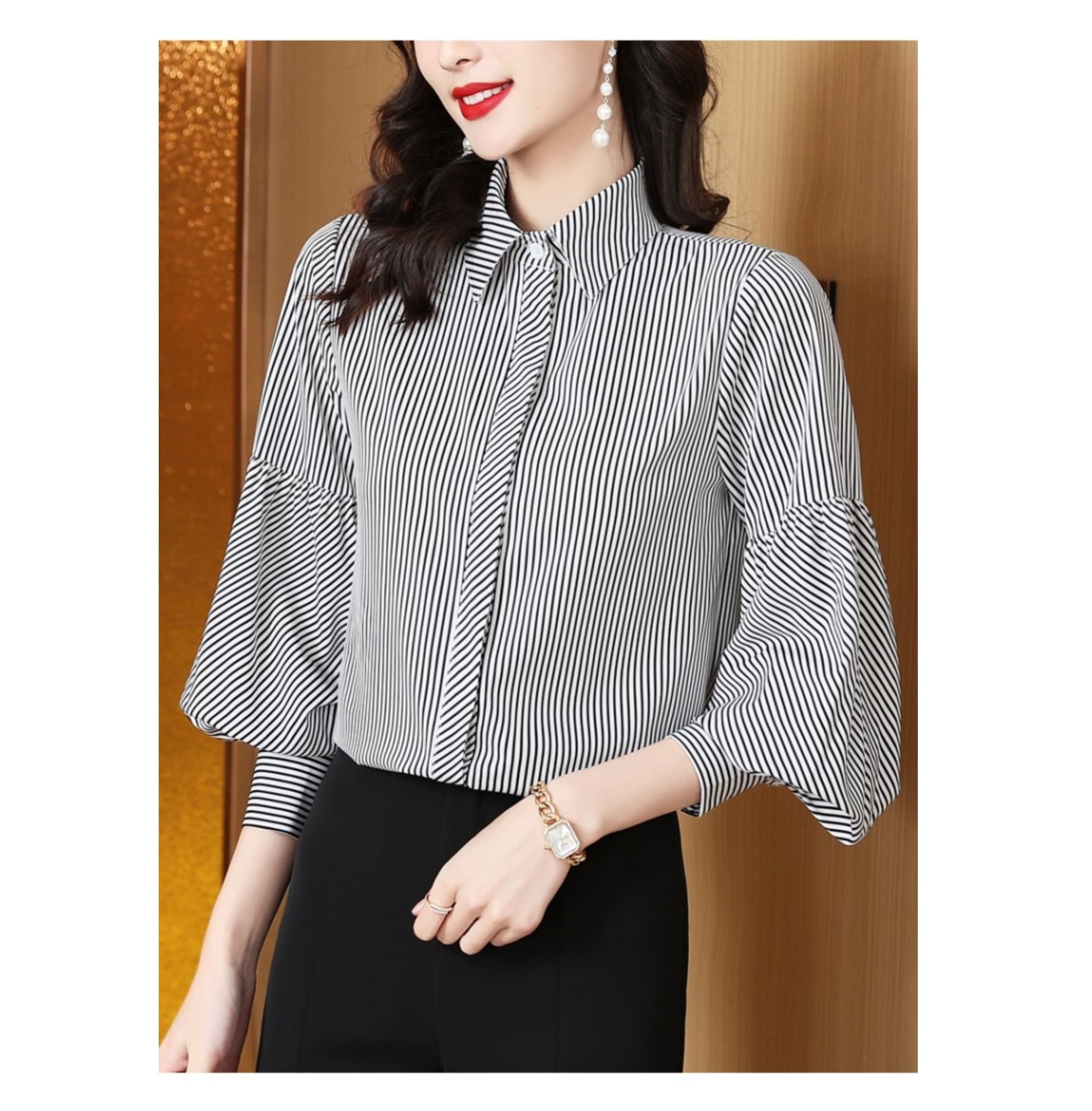 ビビッドなカラーでモダンな印象を与えるストライプ柄シャツ。 切替のあるバルーンスリーブが女性らしさを演出します。 シンプルなデザインながら、ストライプ柄がさりげない個性をプラスする、 一枚持っていると便利なアイテムです。 《カラー》 ホワイト/ブルー/グリーン 《サイズ》 S : 肩幅 38cm 胸囲 90cm 着丈 61cm 袖丈 57.5cm M : 肩幅 39cm 胸囲 94cm 着丈 62cm 袖丈 58.5cm L : 肩幅 40cm 胸囲 98cm 着丈 63cm 袖丈 59.5cm XL : 肩幅 41cm 胸囲 102cm 着丈 64cm 袖丈 60.5cm 2XL : 肩幅 42cm 胸囲 106cm 着丈 65cm 袖丈 61.5cm ※採寸方法により1~3cmの誤差がある場合がございます。 《素材》 ポリエステル ◇人気のおすすめアイテムをもっと見る https://shop.harmonique.net/categories/5911182 ◇商品を購入する前にこちらの【ご購入前に必ずお読みください】をご確認の上お買い求めください。 https://shop.harmonique.net/blog/2024/06/25/010751 《注意事項》 *harmoniqueではお客様からのご注文を受け、お客様の商品を製作・取り寄せしております。 *基本的にお取り寄せ商品となるため、発送までに《1~3週間前後》お時間をいただいております。 *ご覧いただいているPCやスマートフォンの画面により実物と多少色合いが異なる場合がございます。 *イメージ違いやサイズ違い等、その他お客様都合によりますキャンセル・返品交換はご遠慮ください。 トップページはこちら https://shop.harmonique.net/