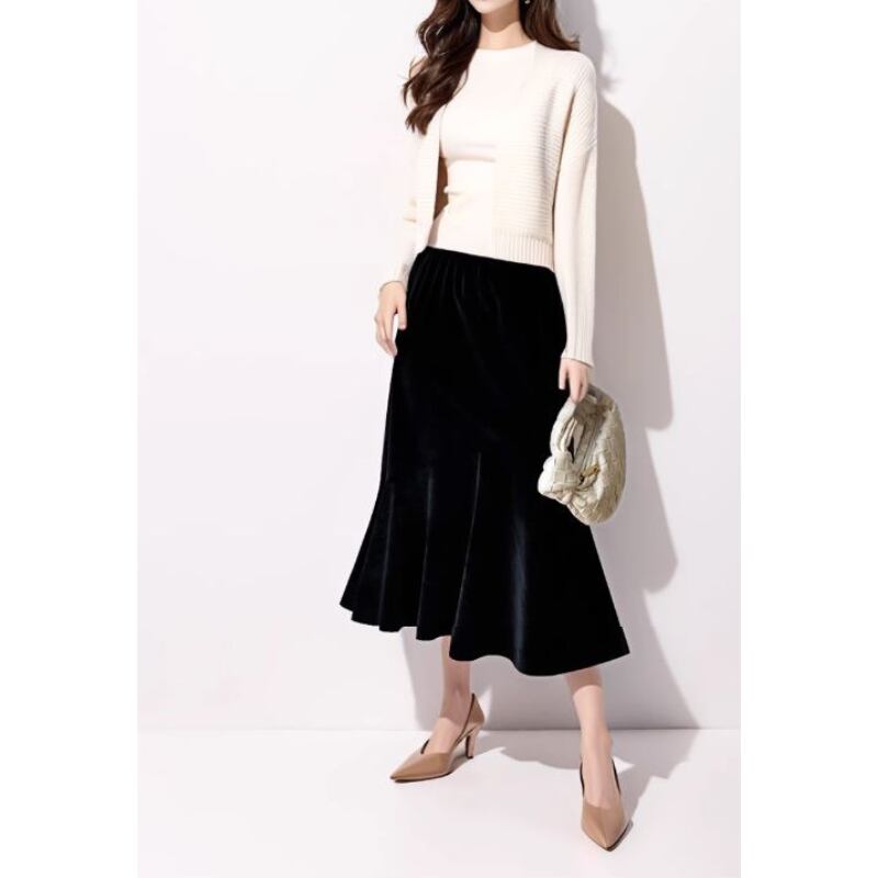 ハイウエストデザインがスタイルアップを叶える、上品なブラックカラーのやや長め丈スカート。 ふわりと広がる裾が女性らしい優しさを演出します。 フィッシュテールデザインで、長さがアシンメトリーになるスタイルです。 《サイズ》 S : ウエスト64-70cm ヒップ90cm 総丈79cm M : ウエスト68-74cm ヒップ94cm 総丈80cm L : ウエスト72-76cm ヒップ98cm 総丈81cm ※採寸方法により1~3cmの誤差がある場合がございます ※モデル 身長165cm 体重48kg Sサイズ着用 《素材》 ポリエステル ◇サイズで迷ったらこちらをチェック https://harmonique.my.canva.site/dagieuhhs-e ◇商品を購入する前にこちらの【ご購入前に必ずお読みください】をご確認の上お買い求めください。 https://shop.harmonique.net/blog/2024/06/25/010751 《注意事項》 *harmoniqueではお客様からのご注文を受け、お客様の商品を製作・取り寄せしております。 *基本的にお取り寄せ商品となるため、発送までに《1~3週間前後》お時間をいただいております。 *ご覧いただいているPCやスマートフォンの画面により実物と多少色合いが異なる場合がございます。 *イメージ違いやサイズ違い等、その他お客様都合によりますキャンセル・返品交換はご遠慮ください。 トップページはこちら https://shop.harmonique.net/