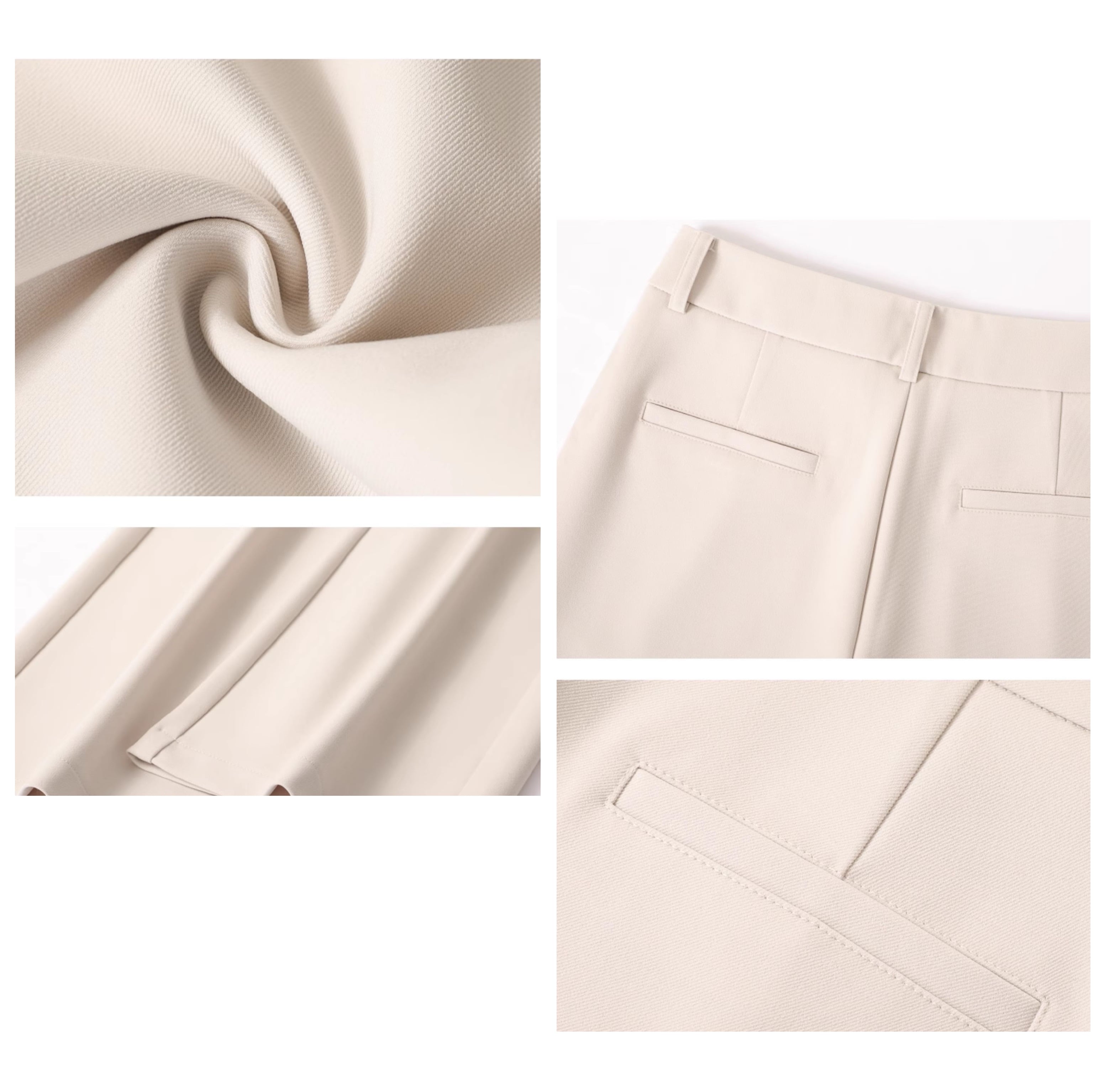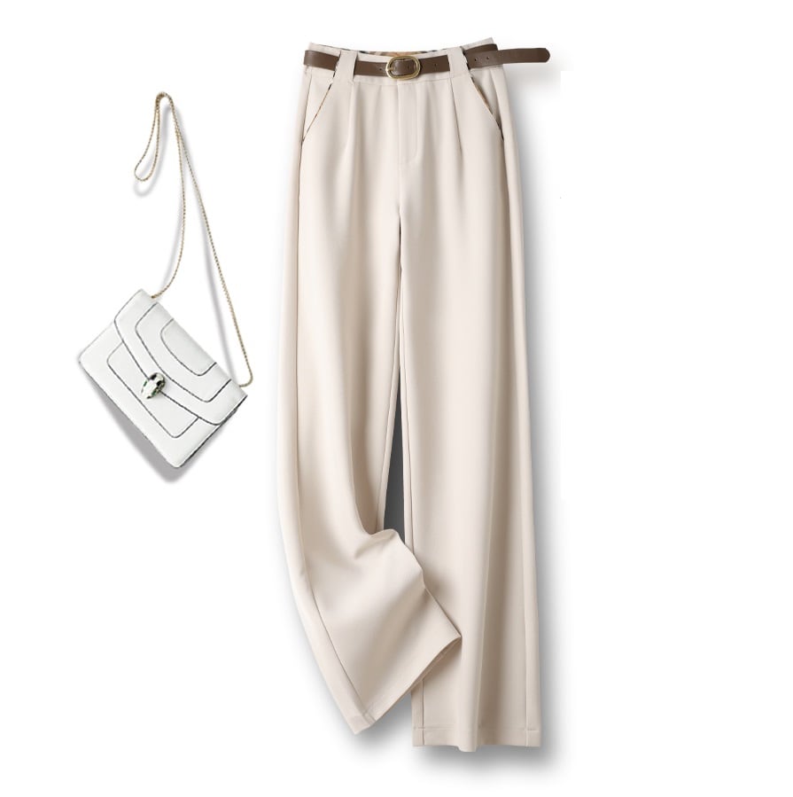 流れるようなドレープデザインとストレートシルエットが美しいパンツ。