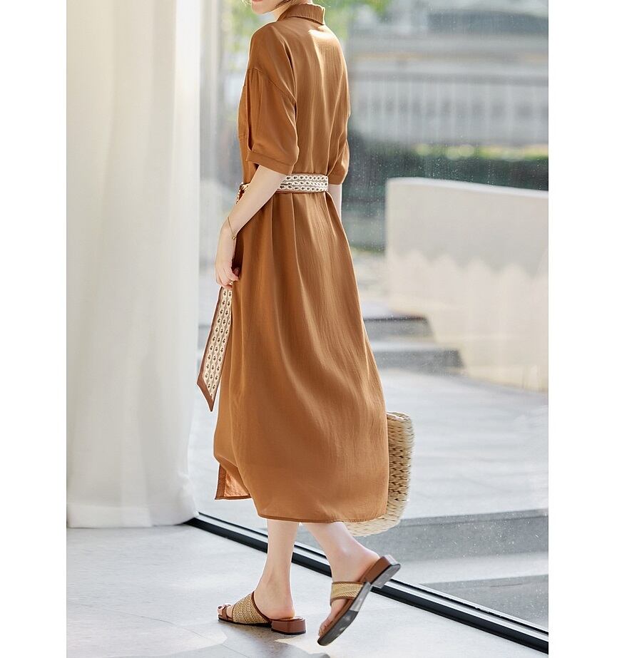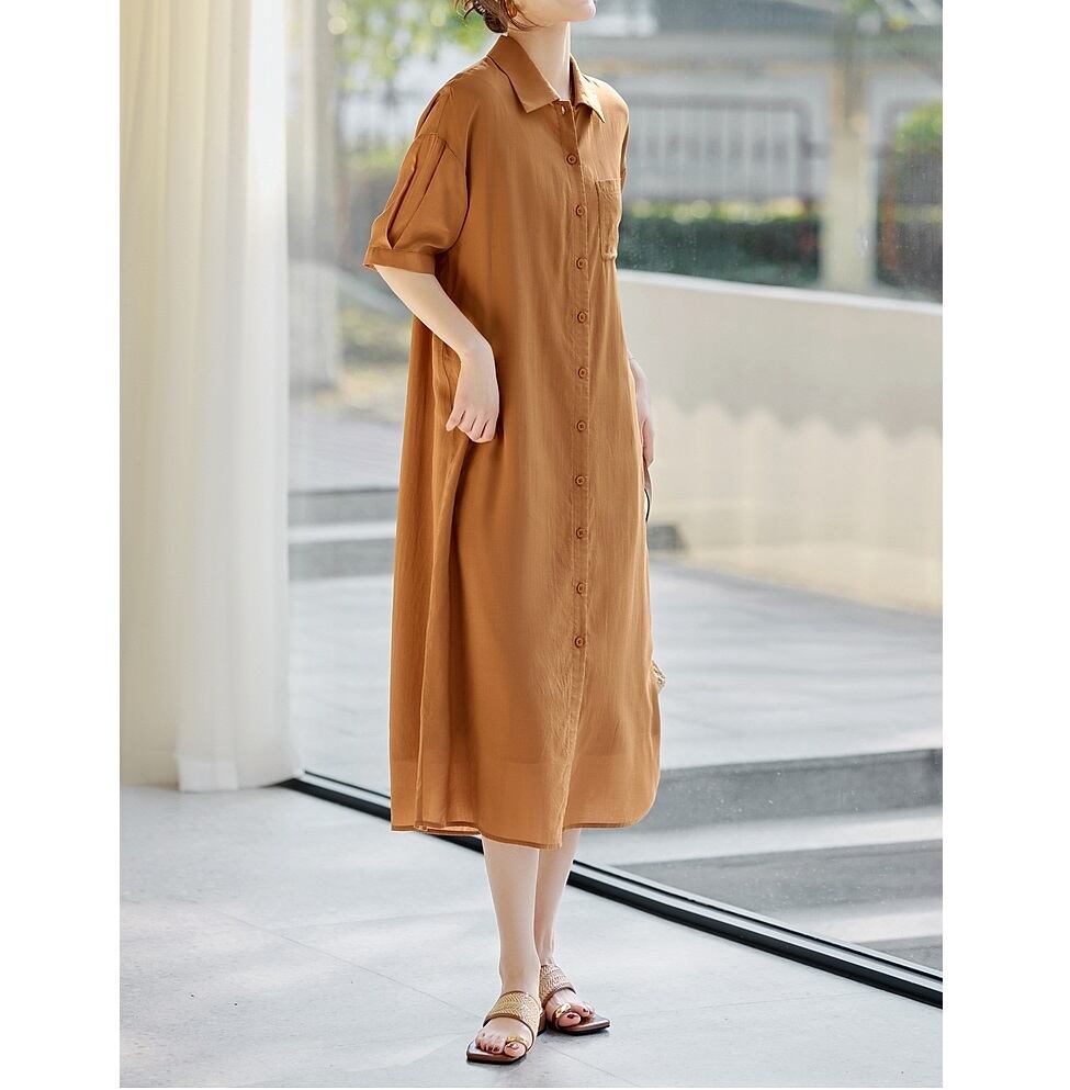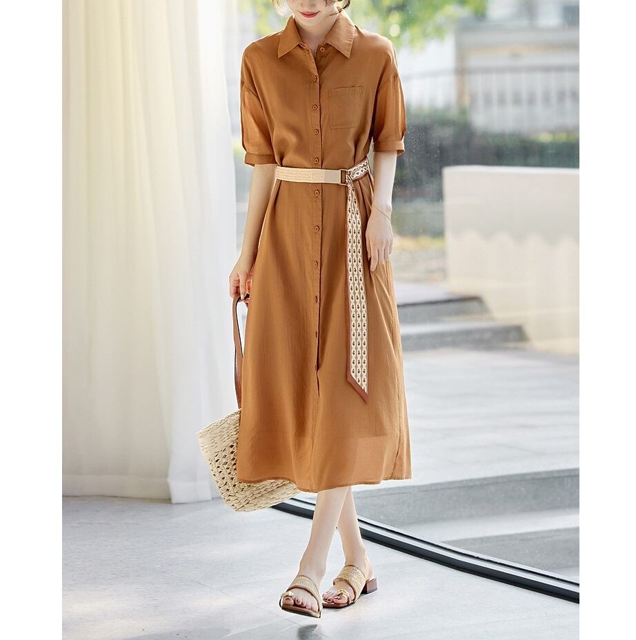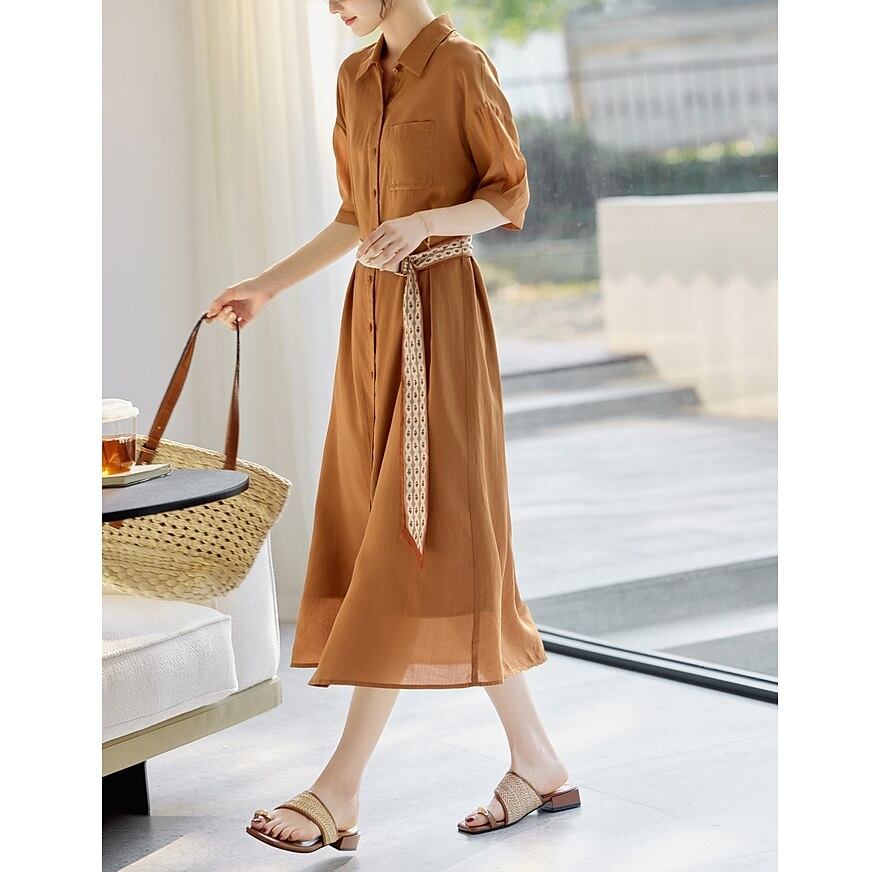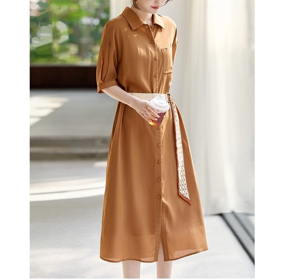Aラインシルエットと落ち着いた色合いが美しい、半袖のシャツワンピースです。 ミディ丈で上品な印象を与え、付属のベルトでウエストマークすることでスタイルアップ効果も期待できます。 ベルトを外してフラットに着こなしたり、パンツスタイルの上に羽織っても素敵です。 《サイズ》 S : 肩幅53.5cm 胸囲102cm 袖丈20.2cm 総丈112.5cm 裾まわり132cm M : 肩幅55cm 胸囲106cm 袖丈20.5cm 総丈115cm 裾まわり136cm L : 肩幅56.5cm 胸囲110cm 袖丈20.8cm 総丈117.5cm 裾まわり140cm XL : 肩幅58cm 胸囲114cm 袖丈21.1cm 総丈120cm 裾まわり144cm 2XL : 肩幅59.5cm 胸囲118cm 袖丈21.4cm 総丈120cm 裾まわり148cm ※採寸方法により1~3cm程度の誤差がある場合がございます。 《素材》 リヨセル ◇サイズで迷ったらこちらをチェック https://harmonique.my.canva.site/dagieuhhs-e ◇商品を購入する前にこちらの【ご購入前に必ずお読みください】をご確認の上お買い求めください。 https://shop.harmonique.net/blog/2024/06/25/010751 《注意事項》 *harmoniqueではお客様からのご注文を受け、お客様の商品を製作・取り寄せしております。 *基本的にお取り寄せ商品となるため、発送までに《1~3週間前後》お時間をいただいております。 *ご覧いただいているPCやスマートフォンの画面により実物と多少色合いが異なる場合がございます。 *イメージ違いやサイズ違い等、その他お客様都合によりますキャンセル・返品交換はご遠慮ください。 トップページはこちら https://shop.harmonique.net/