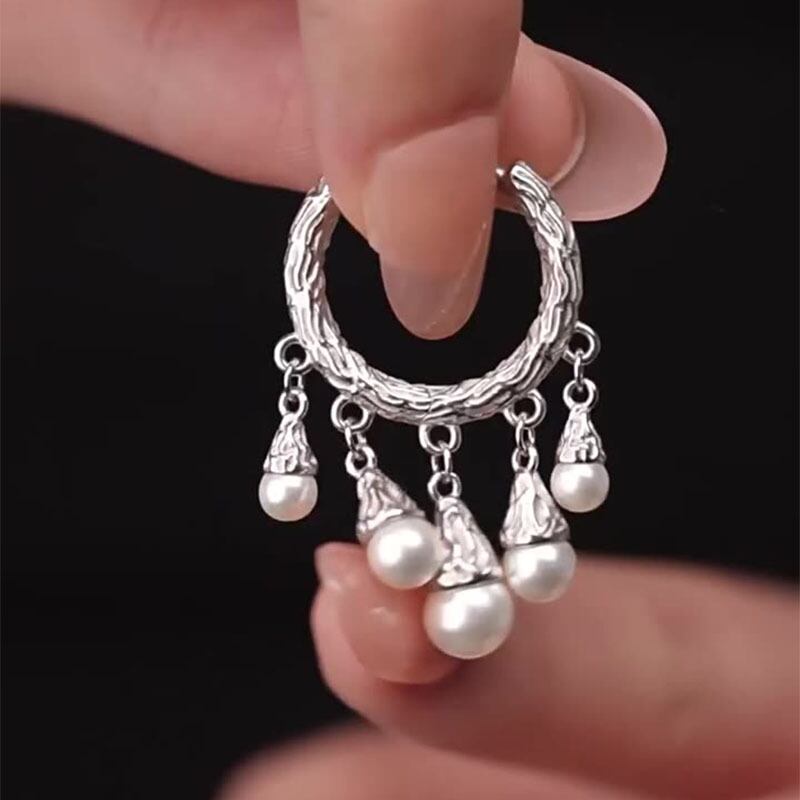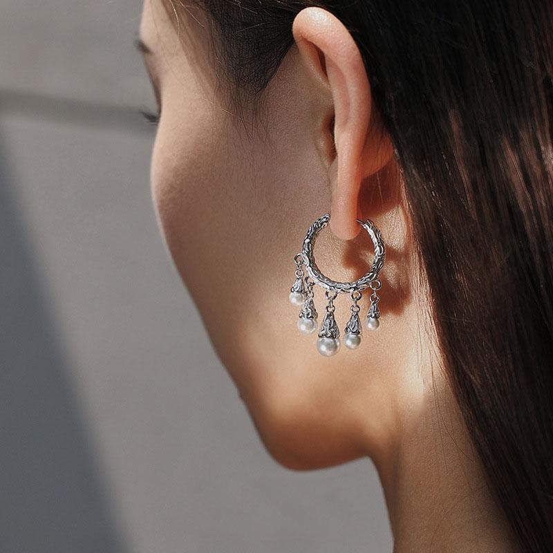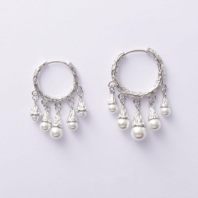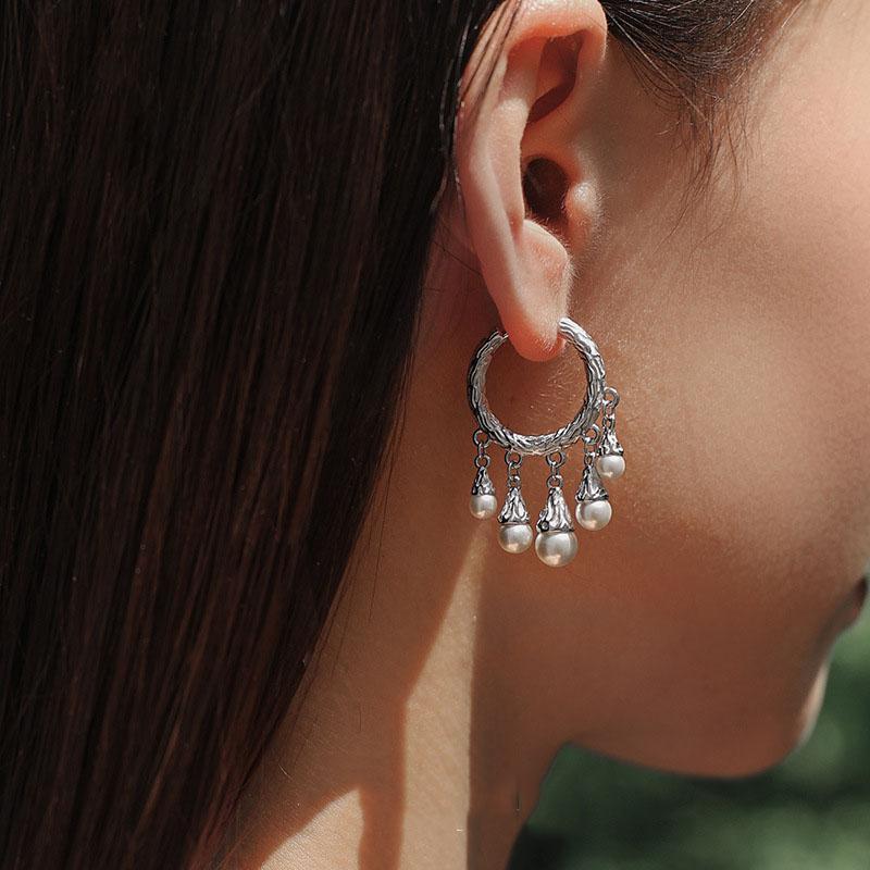 しずく型のモチーフが並んで揺れる、美しいイヤーアクセサリー。