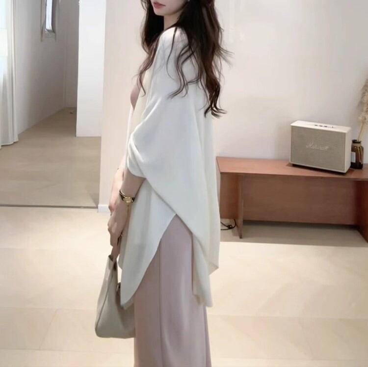 軽やかなケープタイプのカーディガンは着回しやすさが魅力。 体型カバーにも効果的で、着こなしにこなれ感をプラスします。 デイリーから特別な日まで幅広いスタイルに対応できる、着心地の良い1枚です。 《カラー》 ホワイト/グレー/ブラック 《サイズ》 S : 胸囲132cm 着丈69cm M : 胸囲136cm 着丈70cm L : 胸囲140cm 着丈71cm XL : 胸囲144cm 着丈72cm ※採寸方法により1~3cmの誤差がある場合がございます。 《素材》 ポリエステル ◇人気のおすすめアイテムをもっと見る https://shop.harmonique.net/categories/5911182 ◇商品を購入する前にこちらの【ご購入前に必ずお読みください】をご確認の上お買い求めください。 https://shop.harmonique.net/blog/2024/06/25/010751 《注意事項》 *harmoniqueではお客様からのご注文を受け、お客様の商品を製作・取り寄せしております。 *基本的にお取り寄せ商品となるため、発送までに《1~3週間前後》お時間をいただいております。 *ご覧いただいているPCやスマートフォンの画面により実物と多少色合いが異なる場合がございます。 *イメージ違いやサイズ違い等、その他お客様都合によりますキャンセル・返品交換はご遠慮ください。 トップページはこちら https://shop.harmonique.net/