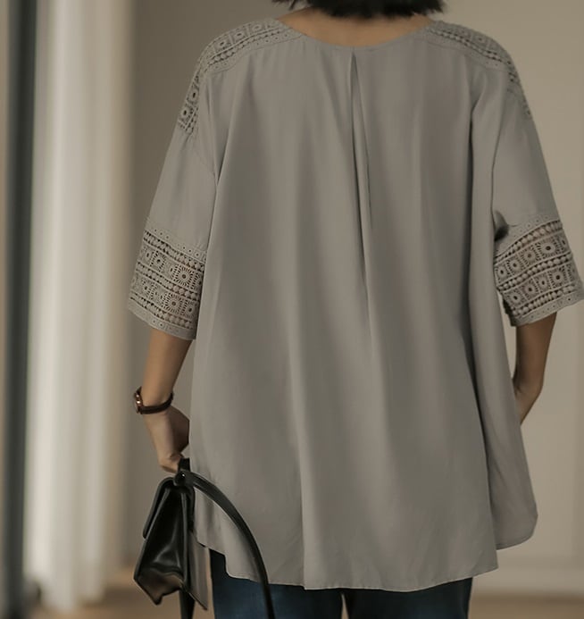 繊細なレース使いが、シンプルながらも女性らしさを演出します。