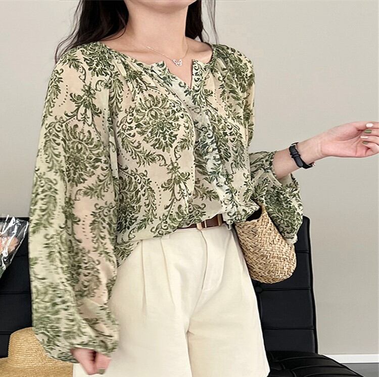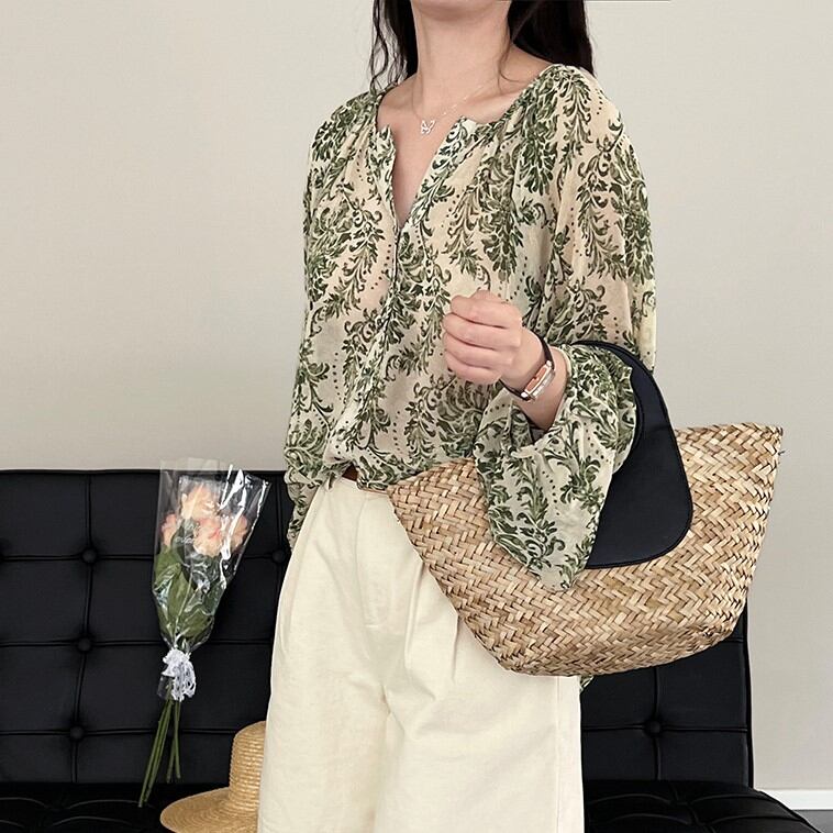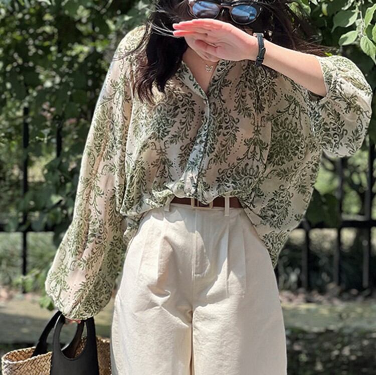 軽やかな素材感のバルーンスリーブが腕を華奢に見せてくれます。