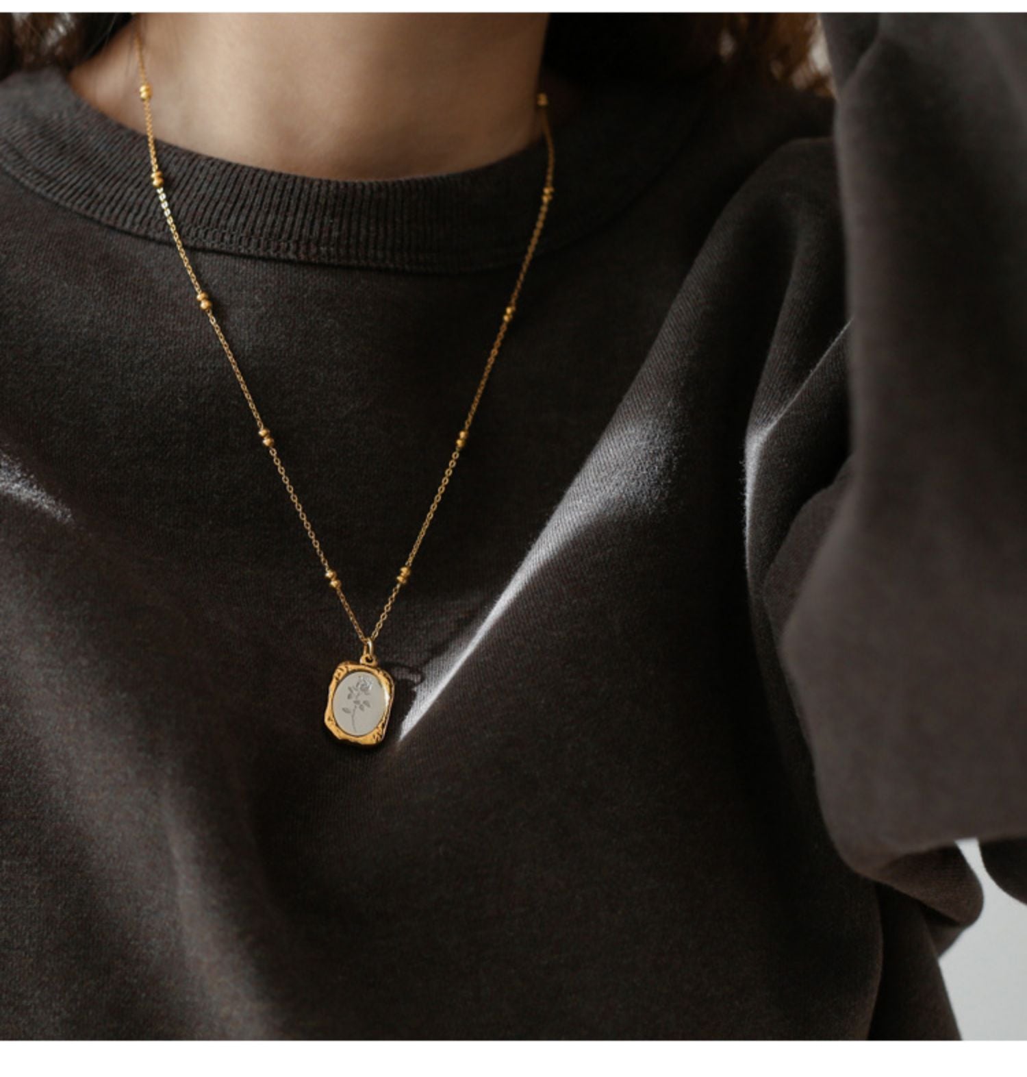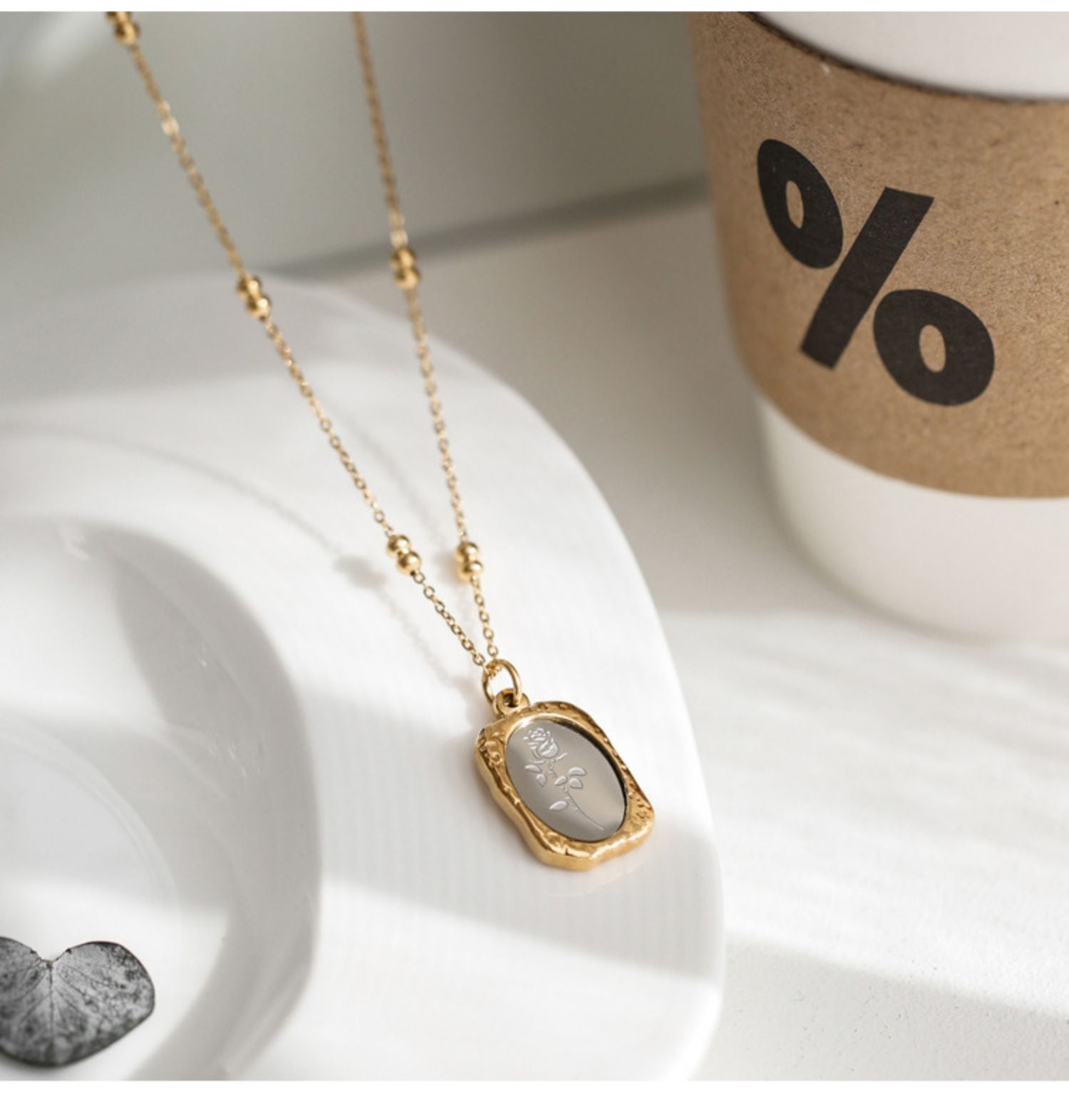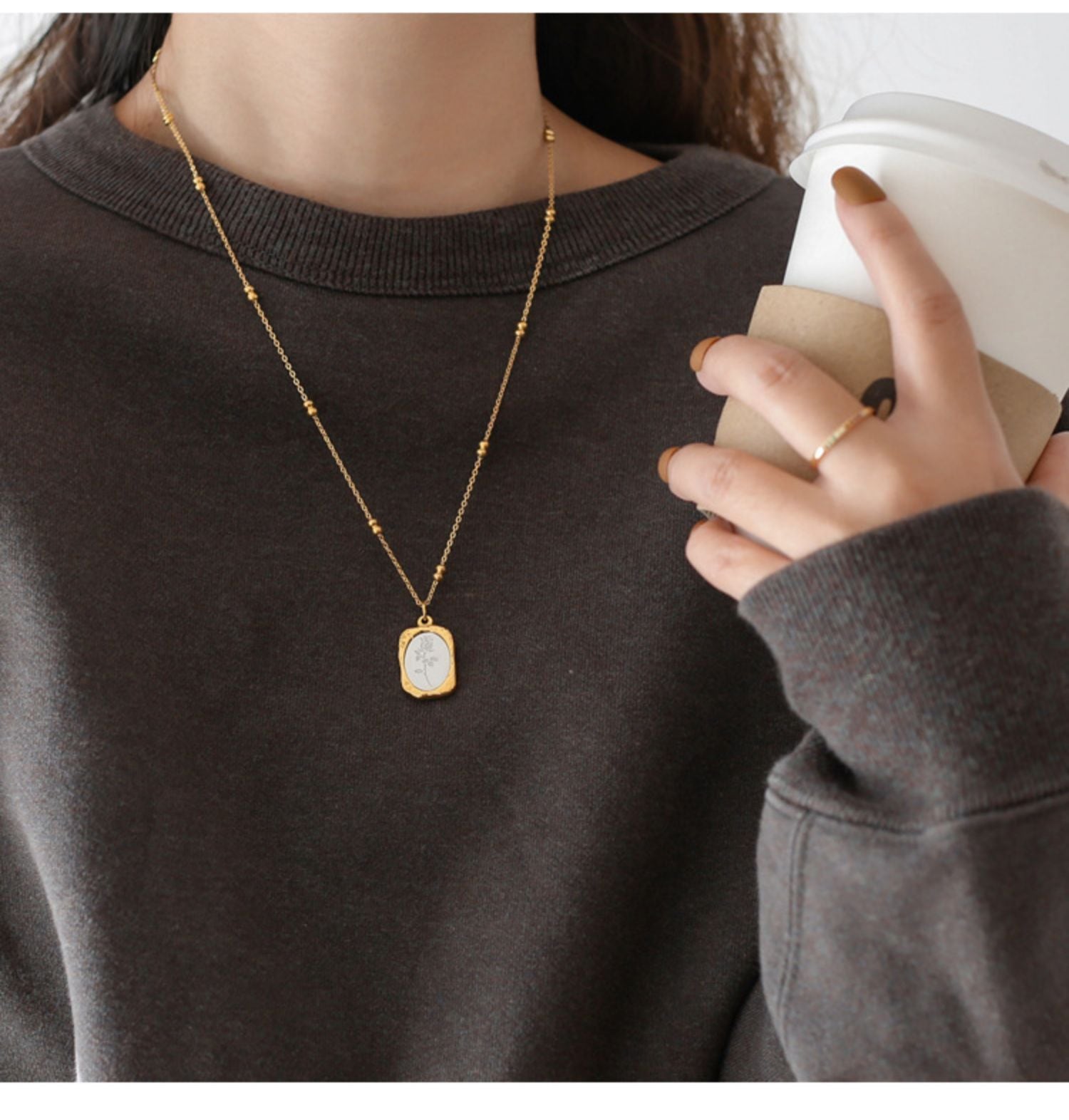 ゴールドのボールチェーンとの組み合わせが、上品さと可愛らしさを演出します。