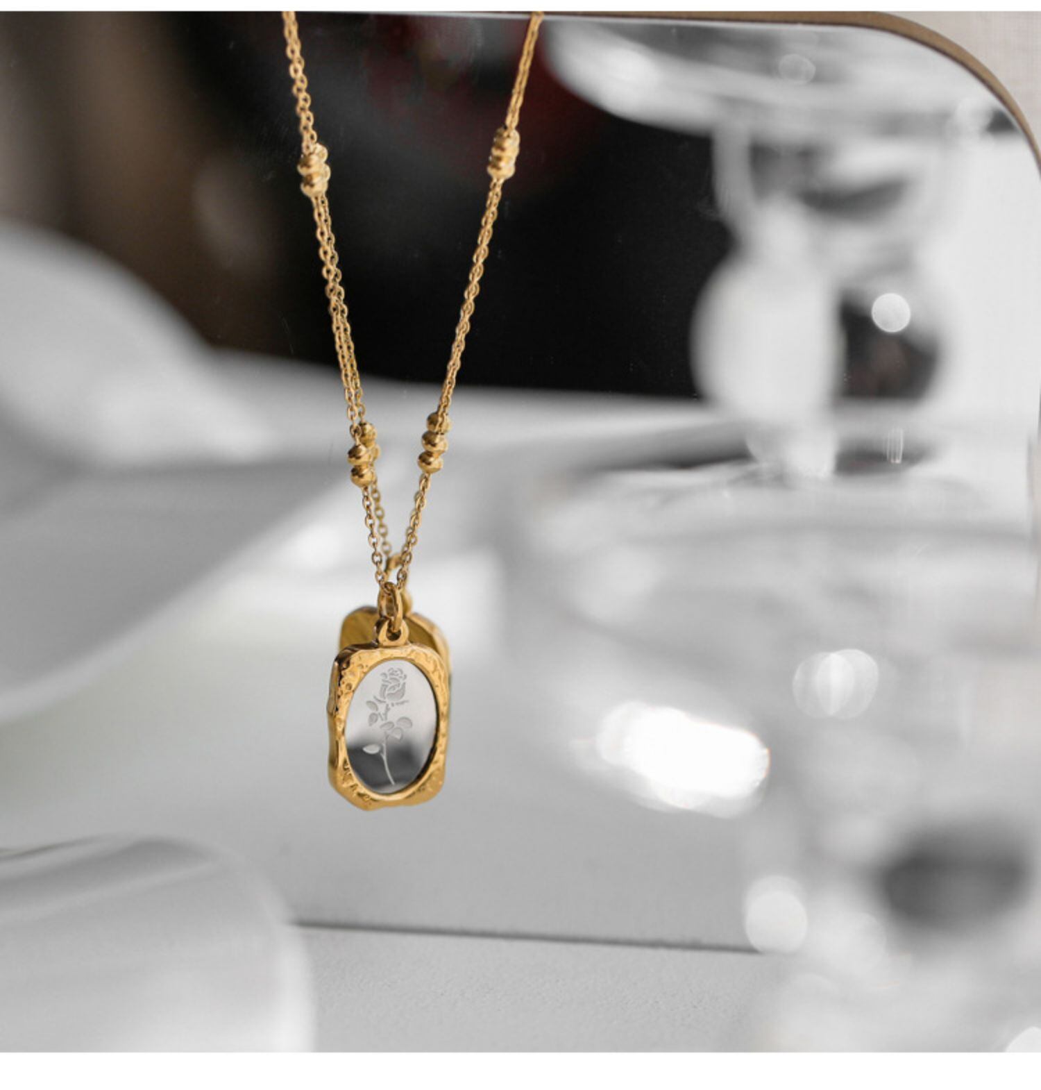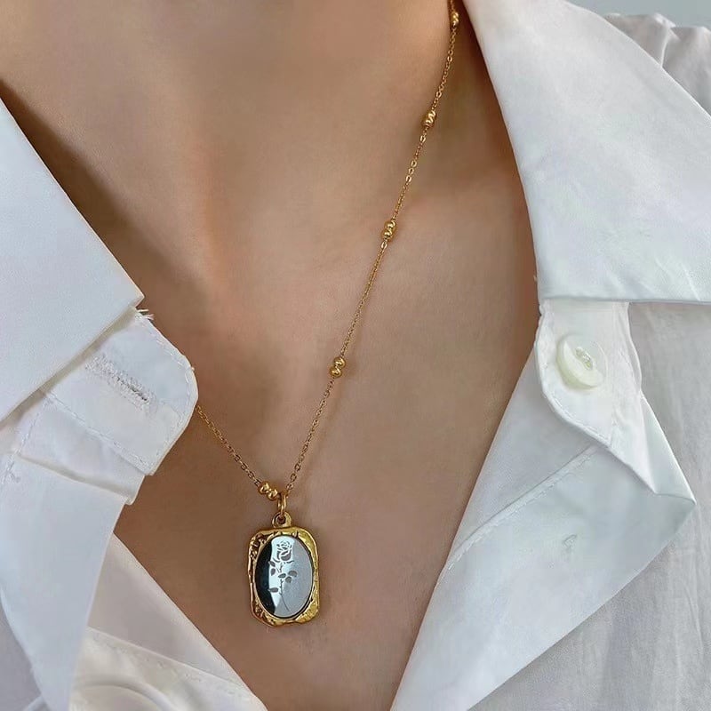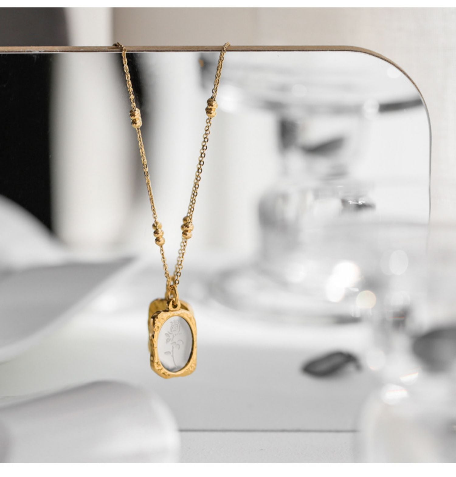 ゴールドのボールチェーンとの組み合わせが、上品さと可愛らしさを演出します。