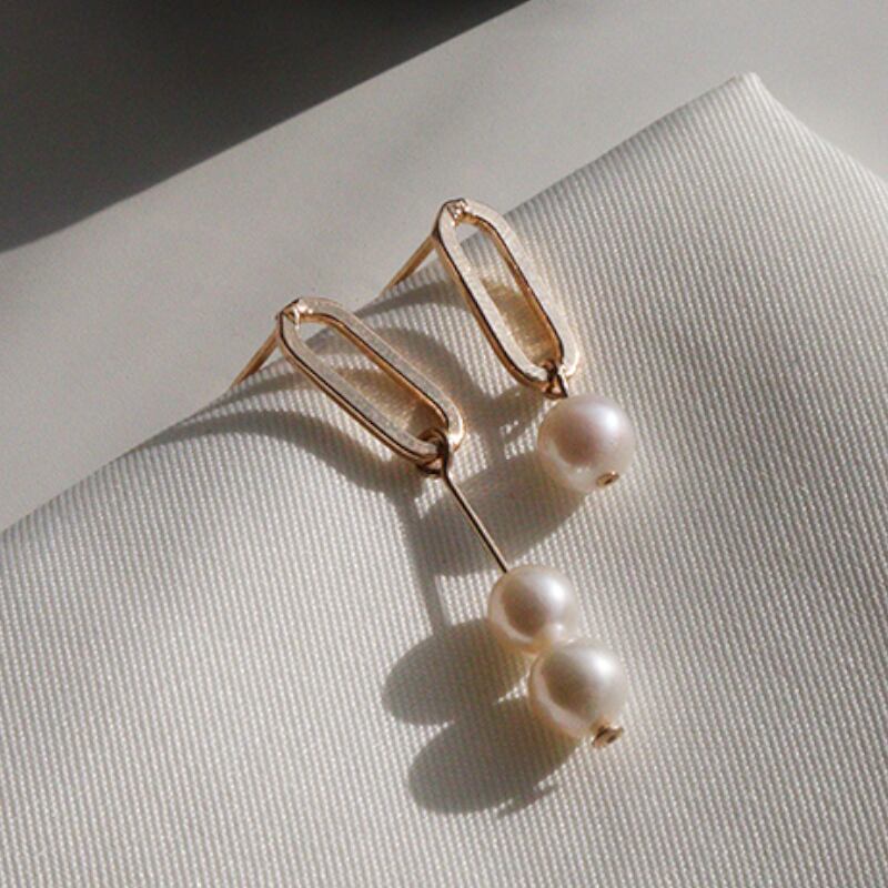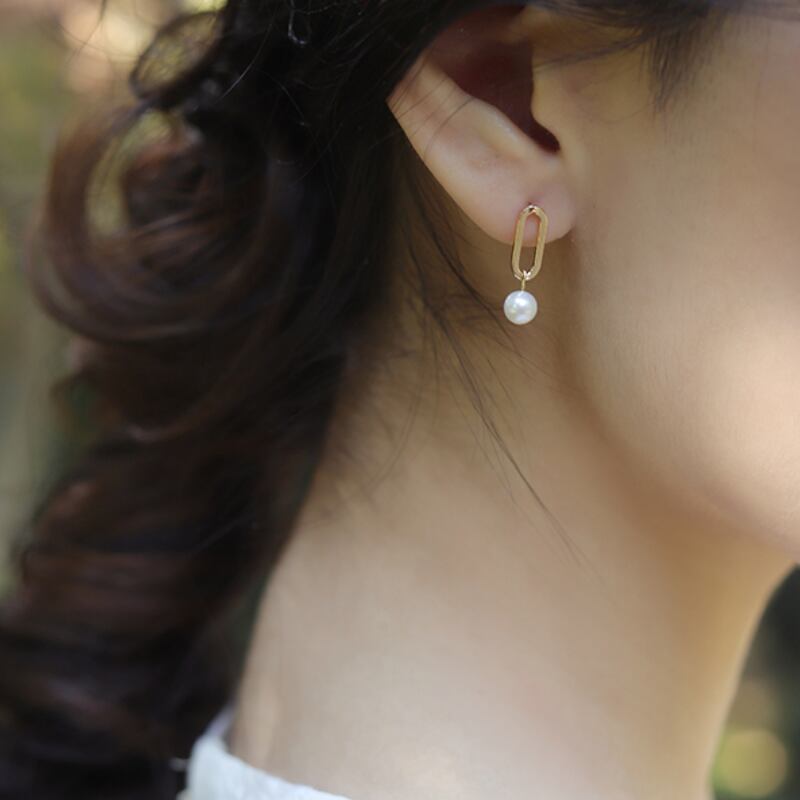 ゴールドのメタルとパールが上品に揺れ動き、シンプルな装いに華やかさをプラスします。