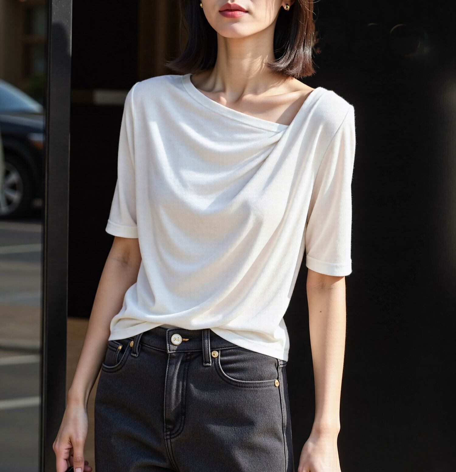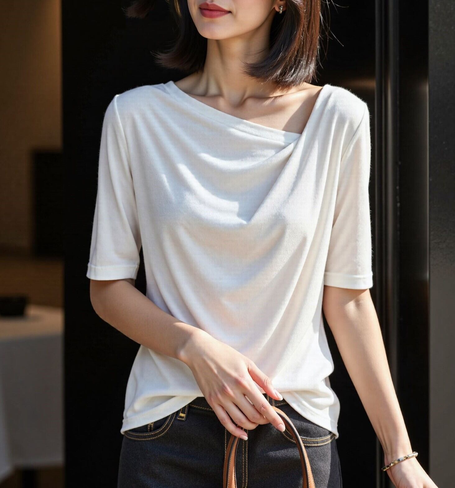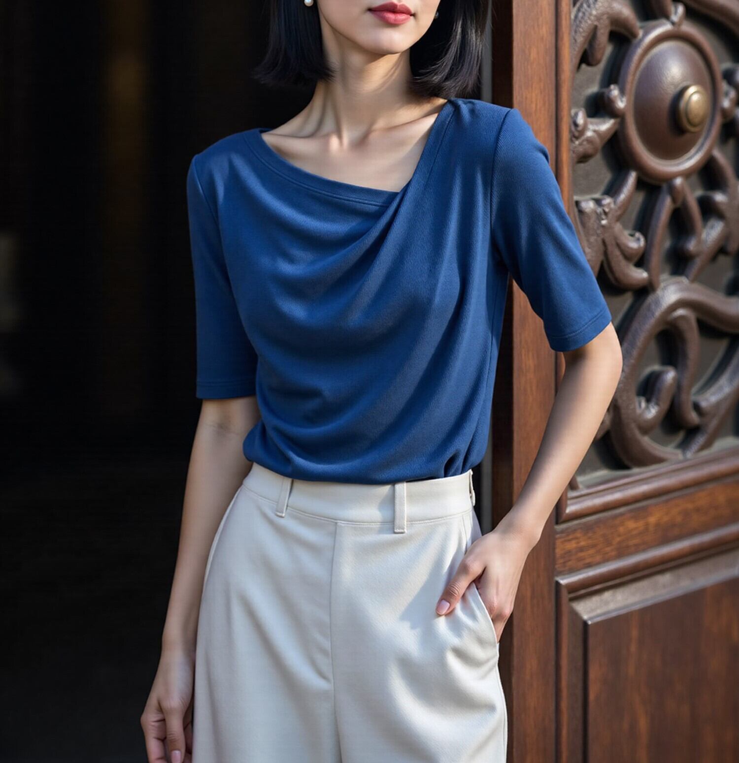 ドレープが美しい、着心地の良い五分袖トップス。 アシンメトリーなネックデザインが、首元をすっきりとした印象に仕上げます。 一枚で着映えするデザインなので、コーディネートに迷った時にも重宝します。 長いシーズン楽しめる五分袖で、使い勝手の良いアイテムです。 《カラー》 ブルー/ホワイト/ブラック 《サイズ》 S : 肩幅38cm 胸囲86cm 着丈51cm 袖丈26.5cm M : 肩幅39cm 胸囲90cm 着丈52cm 袖丈27cm L : 肩幅40cm 胸幅94cm 着丈53cm 袖丈27.5cm XL : 肩幅41cm 胸囲98cm 着丈54cm 袖丈28cm 2XL : 肩幅42cm 胸囲102cm 着丈55cm 袖丈28.5cm ※採寸方法により1~3cmの誤差がある場合がございます。 《素材》 ビスコース繊維85% スパンデックス9% シルク6% ◇人気のおすすめアイテムをもっと見る https://shop.harmonique.net/categories/5911182 ◇商品を購入する前にこちらの【ご購入前に必ずお読みください】をご確認の上お買い求めください。 https://shop.harmonique.net/blog/2024/06/25/010751 《注意事項》 *harmoniqueではお客様からのご注文を受け、お客様の商品を製作・取り寄せしております。 *基本的にお取り寄せ商品となるため、発送までに《1~3週間前後》お時間をいただいております。 *ご覧いただいているPCやスマートフォンの画面により実物と多少色合いが異なる場合がございます。 *イメージ違いやサイズ違い等、その他お客様都合によりますキャンセル・返品交換はご遠慮ください。 トップページはこちら https://shop.harmonique.net/