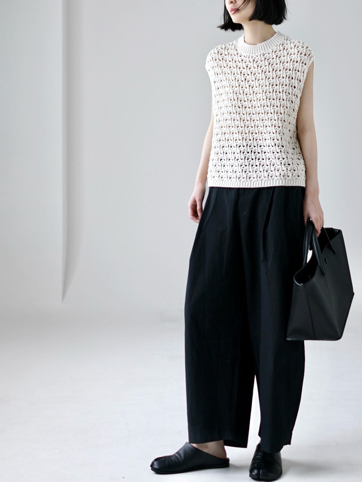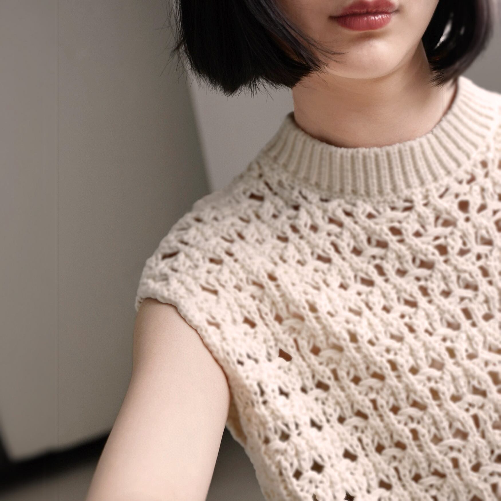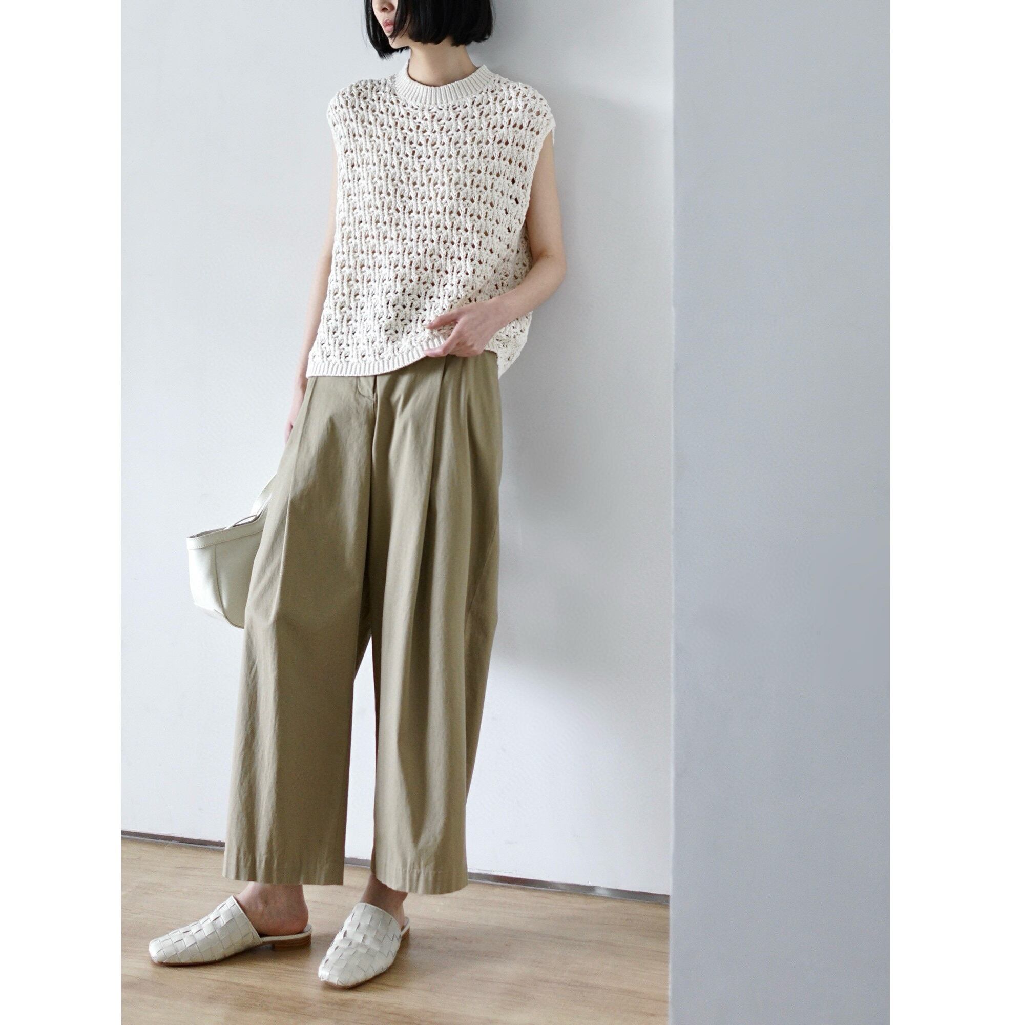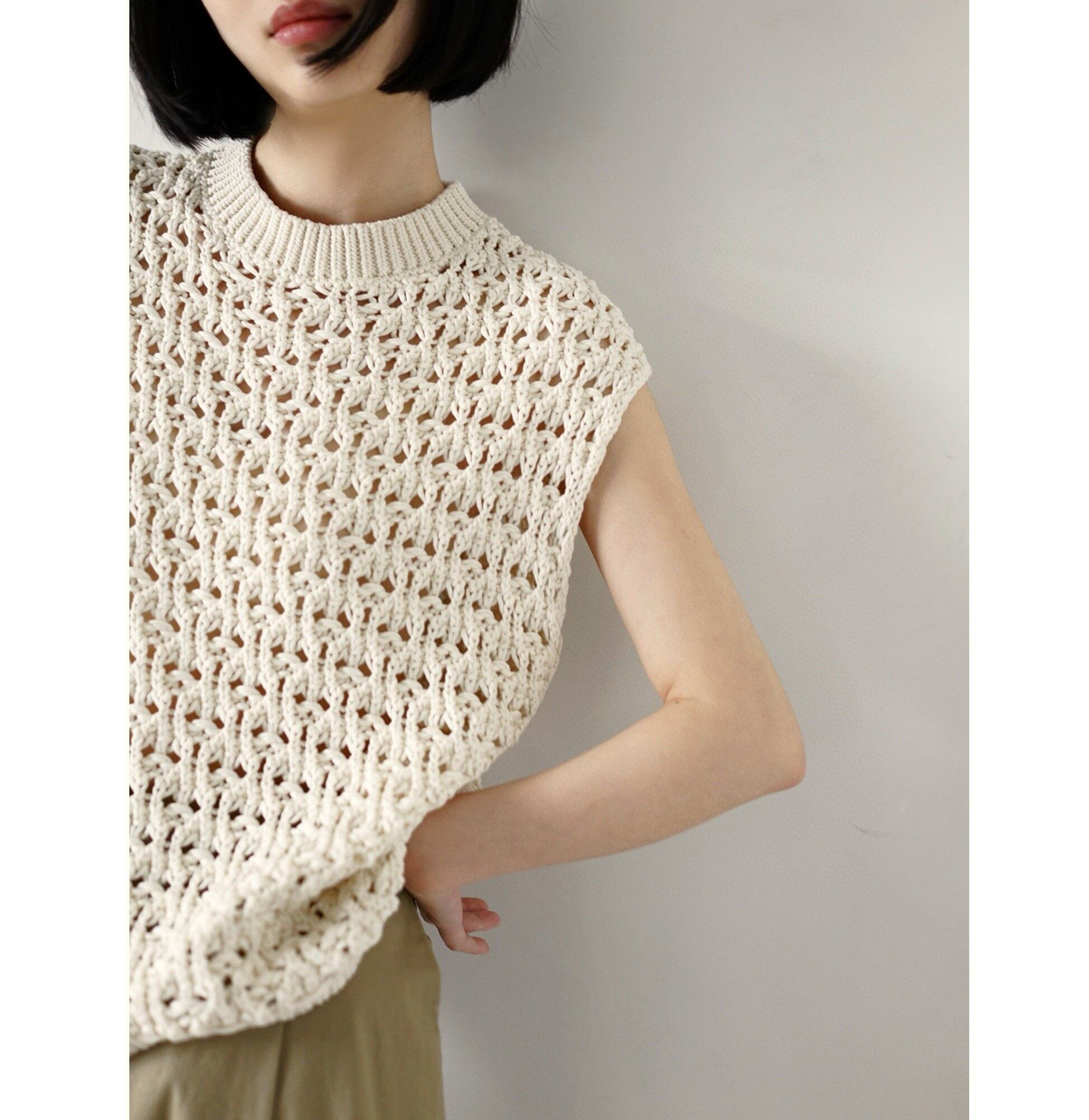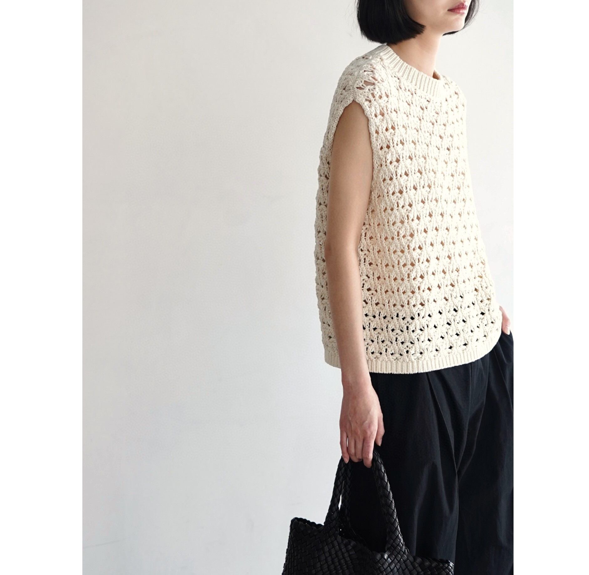 涼しげな透かし編みが魅力のノースリーブニット。 クルーネックのデザインは、上品で落ち着いた印象を与え、どんなスタイルにも自然と馴染みます。 カジュアルなボトムスと合わせればリラックスした休日スタイルに、スカートと合わせればフェミニンな装いにと、着回し力の高さも魅力です。 ※コーディネートで着用している帽子はこちら https://shop.harmonique.net/items/111313794 《サイズ》 S : 肩幅40cm 胸囲 106cm 着丈 58cm M : 肩幅 41cm 胸囲 110cm 着丈 59cm L : 肩幅 42cm 胸囲 114cm 着丈 60cm XL : 肩幅 43cm 胸囲 118cm 着丈 61cm ※採寸方法により1~3cmの誤差がある場合がございます。 《素材》 綿50%/ポリエステル50% ◇人気のおすすめアイテムをもっと見る https://shop.harmonique.net/categories/5911182 ◇商品を購入する前にこちらの【ご購入前に必ずお読みください】をご確認の上お買い求めください。 https://shop.harmonique.net/blog/2024/06/25/010751 《注意事項》 *harmoniqueではお客様からのご注文を受け、お客様の商品を製作・取り寄せしております。 *基本的にお取り寄せ商品となるため、発送までに《1~3週間前後》お時間をいただいております。 *ご覧いただいているPCやスマートフォンの画面により実物と多少色合いが異なる場合がございます。 *イメージ違いやサイズ違い等、その他お客様都合によりますキャンセル・返品交換はご遠慮ください。 トップページはこちら https://shop.harmonique.net/