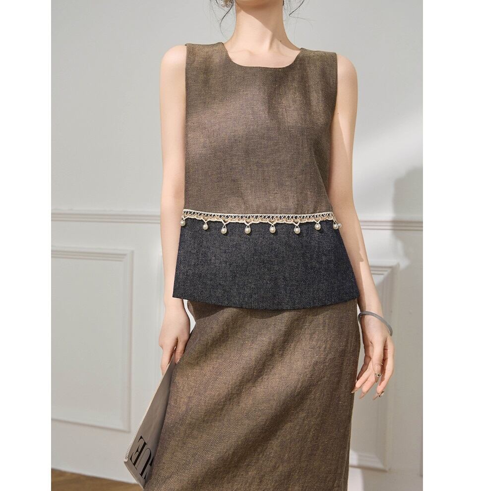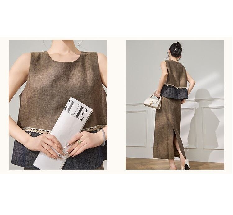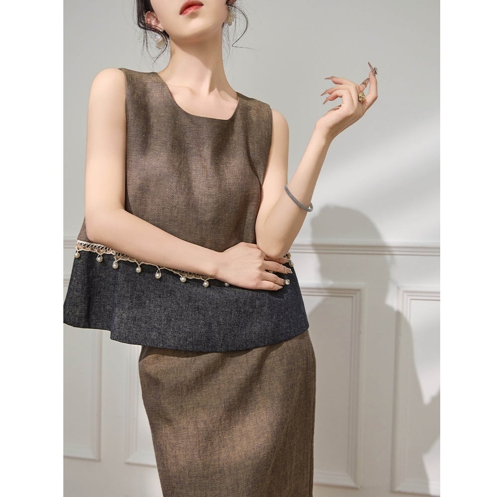 洗練された印象のノースリーブトップと同生地のスカートのセットアップ。 落ち着いた配色と高級感のあるテクスチャで、大人のエレガントスタイルを演出します。 すっきりと整うシルエットも魅力です。 《サイズ》トップスを選択後、オプションでスカートサイズをお選びください トップス S:肩幅34cm 胸囲94cm 着丈49㎝ M:肩幅35cm 胸囲98cm 着丈50㎝ L:肩幅36cm 胸囲102cm 着丈51㎝ XL:肩幅37cm 胸囲106cm 着丈52㎝ スカート S:ウエスト70cm スカート丈77㎝ M:ウエスト74cm スカート丈78㎝ L:ウエスト78cm スカート丈79㎝ XL:ウエスト82cm スカート丈80㎝ ※採寸方法により1~3cmの誤差がある場合がございます。 ※モデル 身長161cm 体重45kg Sサイズ着用 《素材》 麻、ポリエステル ◇人気のおすすめアイテムをもっと見る https://shop.harmonique.net/categories/5911182 ◇商品を購入する前にこちらの【ご購入前に必ずお読みください】をご確認の上お買い求めください。 https://shop.harmonique.net/blog/2024/06/25/010751 《注意事項》 *harmoniqueではお客様からのご注文を受け、お客様の商品を製作・取り寄せしております。 *基本的にお取り寄せ商品となるため、発送までに《1~3週間前後》お時間をいただいております。 *ご覧いただいているPCやスマートフォンの画面により実物と多少色合いが異なる場合がございます。 *イメージ違いやサイズ違い等、その他お客様都合によりますキャンセル・返品交換はご遠慮ください。 トップページはこちら https://shop.harmonique.net/
