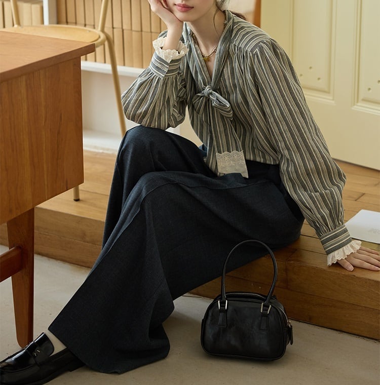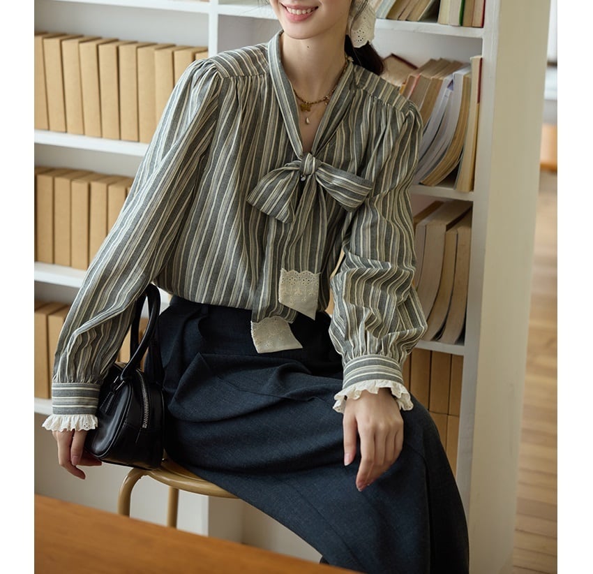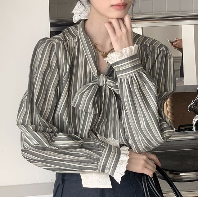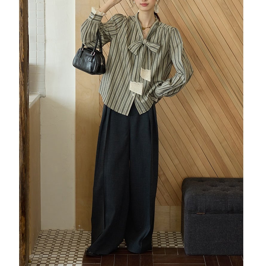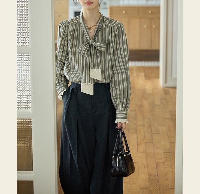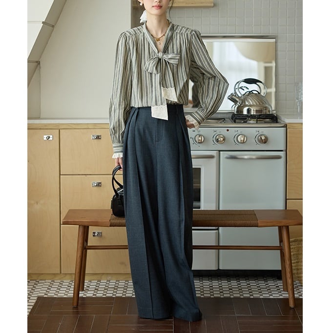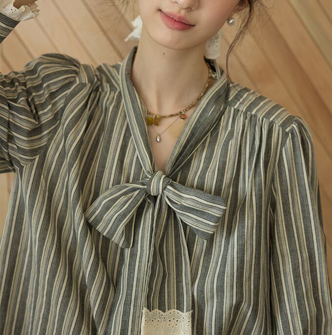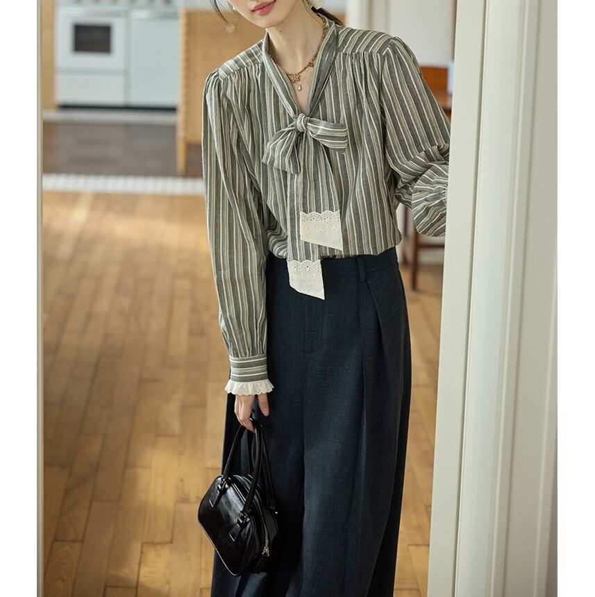 落ち着きのあるストライプ柄と、甘すぎないレースの組合せが絶妙なボウタイブラウス。 ボウタイデザインが女性らしい華やかさを演出します。 オフィスシーンにも、休日のカジュアルスタイルにも合わせやすく、様々な着こなしが楽しめます。 《サイズ》 S : 肩幅37.5cm 胸囲110cm 袖丈64cm 着丈62.5cm M : 肩幅38.5cm 胸囲114cm 袖丈64.8cm 着丈63.5cm L : 肩幅39.5cm 胸囲118cm 袖丈65.6cm 着丈64.5cm ※採寸方法により1~3cmの誤差がある場合がございます。 《素材》 綿100% ◇人気のおすすめアイテムをもっと見る https://shop.harmonique.net/categories/5911182 ◇商品を購入する前にこちらの【ご購入前に必ずお読みください】をご確認の上お買い求めください。 https://shop.harmonique.net/blog/2024/06/25/010751 《注意事項》 *harmoniqueではお客様からのご注文を受け、お客様の商品を製作・取り寄せしております。 *基本的にお取り寄せ商品となるため、発送までに《1~3週間前後》お時間をいただいております。 *ご覧いただいているPCやスマートフォンの画面により実物と多少色合いが異なる場合がございます。 *イメージ違いやサイズ違い等、その他お客様都合によりますキャンセル・返品交換はご遠慮ください。 トップページはこちら https://shop.harmonique.net/