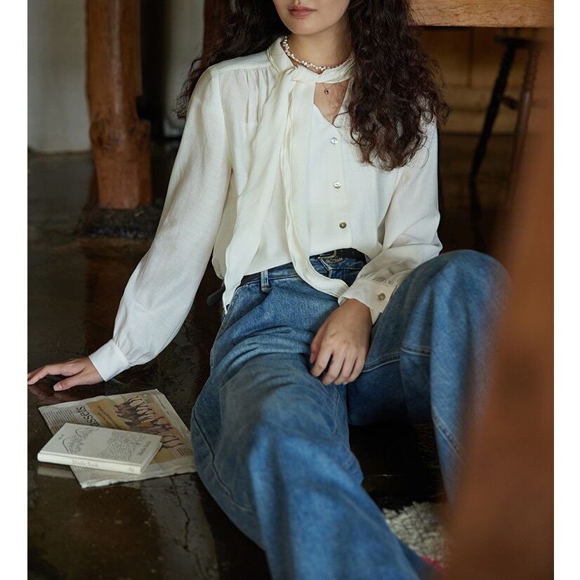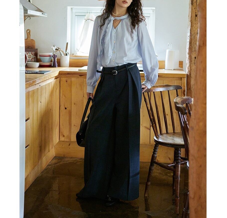 甘すぎないフレンチレトロスタイルが魅力のブラウス。 スカーフのような控えめなフリルボウタイが上品さを際立たせます。 オフィスシーンにも着回しやすく、きちんと感とトレンド感を両立した着こなしが叶います。 《カラー》 ライトブルー/ホワイト 《サイズ》 S : 肩幅39cm 胸囲116cm 袖丈60.3cm 着丈62.5cm M : 肩幅40cm 胸囲120cm 袖丈61.1cm 着丈63.5cm L : 肩幅41cm 胸囲124cm 袖丈61.9cm 着丈64.5cm ※採寸方法により1~3cmの誤差がある場合がございます。 ※モデル 身長171cm 体重45kg Sサイズ着用 《素材》 ポリエステル58%/アセテート42% ◇人気のおすすめアイテムをもっと見る https://shop.harmonique.net/categories/5911182 ◇商品を購入する前にこちらの【ご購入前に必ずお読みください】をご確認の上お買い求めください。 https://shop.harmonique.net/blog/2024/06/25/010751 《注意事項》 *harmoniqueではお客様からのご注文を受け、お客様の商品を製作・取り寄せしております。 *基本的にお取り寄せ商品となるため、発送までに《1~3週間前後》お時間をいただいております。 *ご覧いただいているPCやスマートフォンの画面により実物と多少色合いが異なる場合がございます。 *イメージ違いやサイズ違い等、その他お客様都合によりますキャンセル・返品交換はご遠慮ください。 トップページはこちら https://shop.harmonique.net/