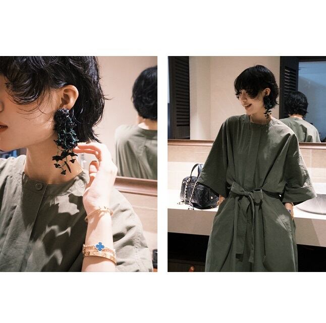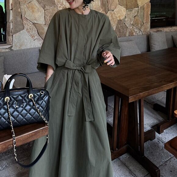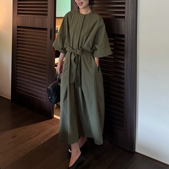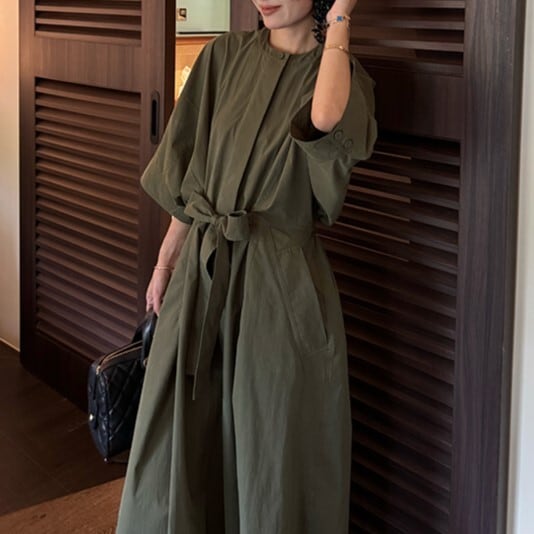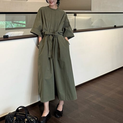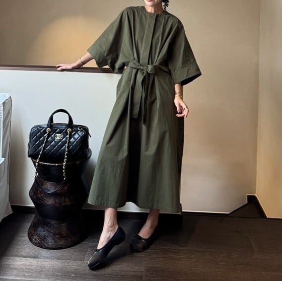 落ち着いたグリーンが大人っぽいクレバーな雰囲気を演出するワンピース。 ゆったりとしたドロップショルダーシルエットでリラックス感があり、スタイリッシュに体型カバー。 リボンベルトでウエストマークすることでメリハリのあるシルエットを実現します。 一枚で着映えするから、ワードローブにあると頼もしい一枚です。 《サイズ》 36 : 裄丈111cm ウエスト74cm 総丈118.5cm 裾回り192cm ※参考体重40~50kg 38 : 裄丈115cm ウエスト78cm 総丈120.5cm 裾回り196cm ※参考体重50~63kg 40 : 裄丈119cm ウエスト82cm 総丈122.5cm 裾回り200cm ※参考体重62~70kg ※採寸方法により1~3cm程度の誤差がある場合がございます。 ※モデル 身長162cm 体重50kg 36サイズ着用 《素材》 綿70%/ポリアミド繊維30% ◇サイズで迷ったらこちらをチェック https://harmonique.my.canva.site/dagieuhhs-e ◇商品を購入する前にこちらの【ご購入前に必ずお読みください】をご確認の上お買い求めください。 https://shop.harmonique.net/blog/2024/06/25/010751 《注意事項》 *harmoniqueではお客様からのご注文を受け、お客様の商品を製作・取り寄せしております。 *基本的にお取り寄せ商品となるため、発送までに《1~3週間前後》お時間をいただいております。 *ご覧いただいているPCやスマートフォンの画面により実物と多少色合いが異なる場合がございます。 *イメージ違いやサイズ違い等、その他お客様都合によりますキャンセル・返品交換はご遠慮ください。 トップページはこちら https://shop.harmonique.net/