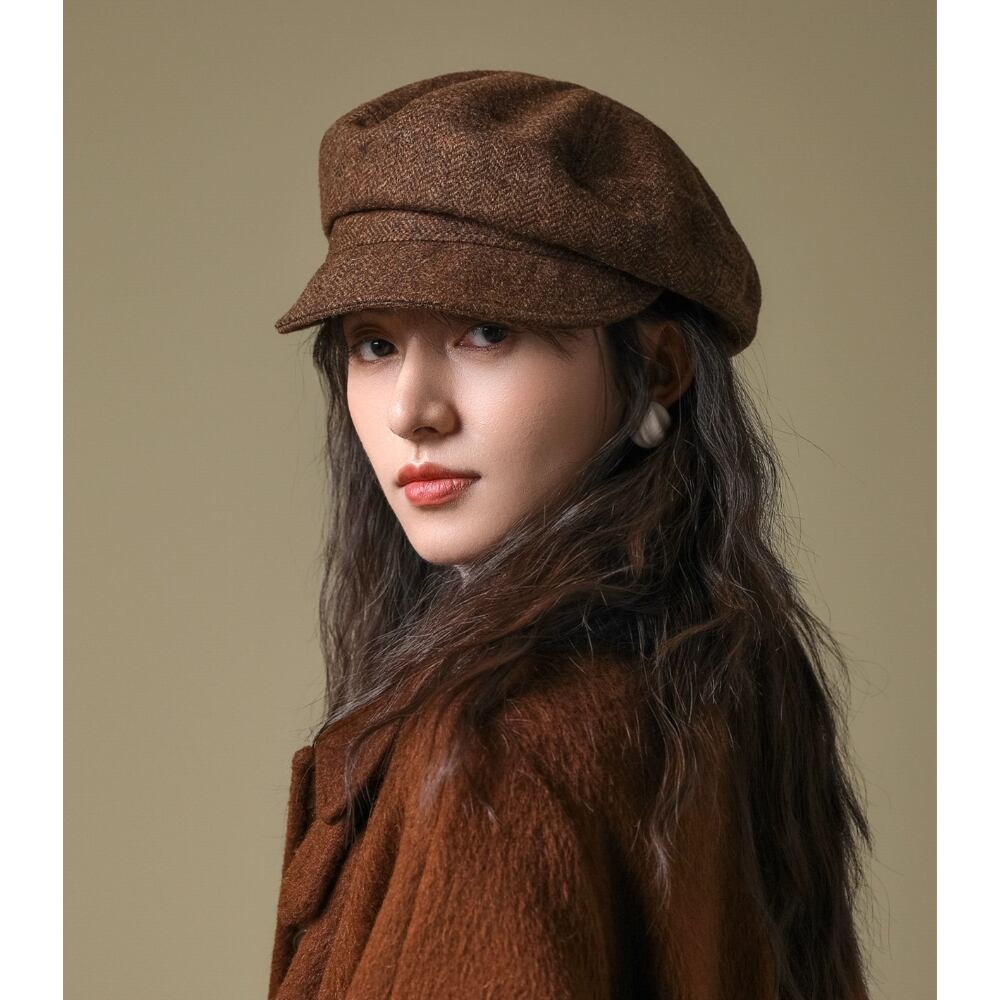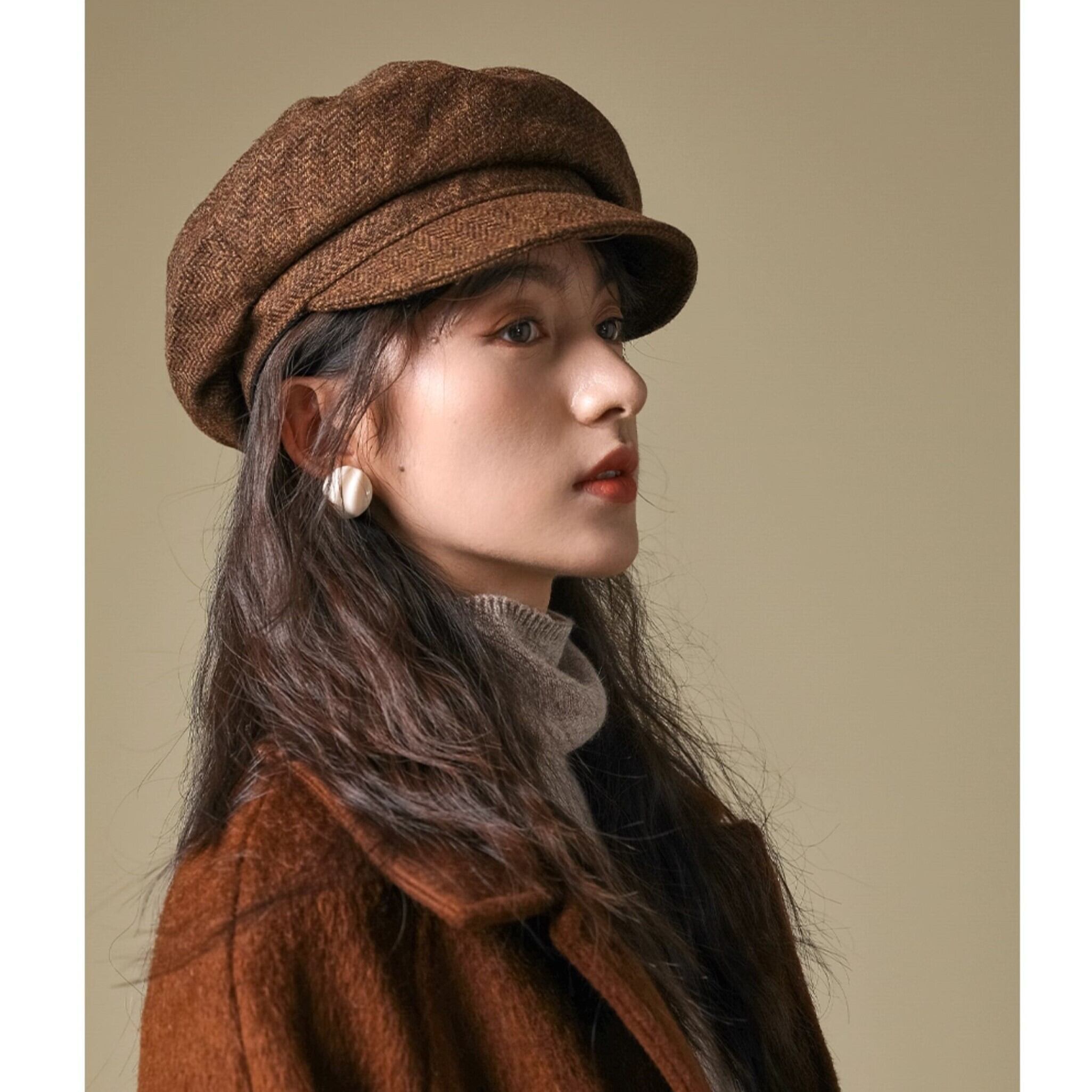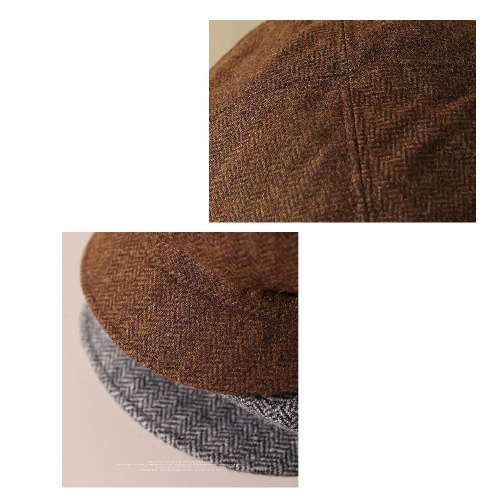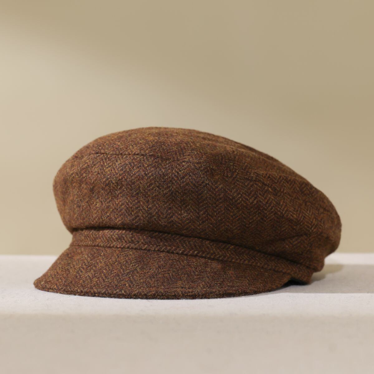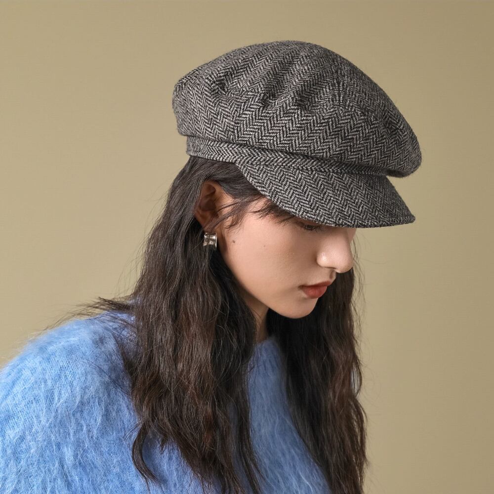 精緻なヘリンボーン柄の、英国レトロ風デザインキャスケット。