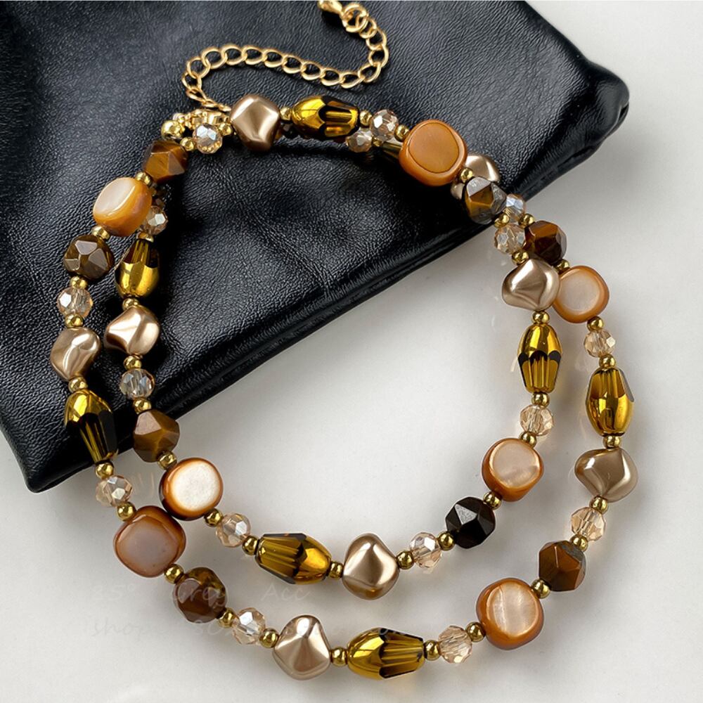 様々なフォルムとカラーのビーズをあしらったショートネックレス。
