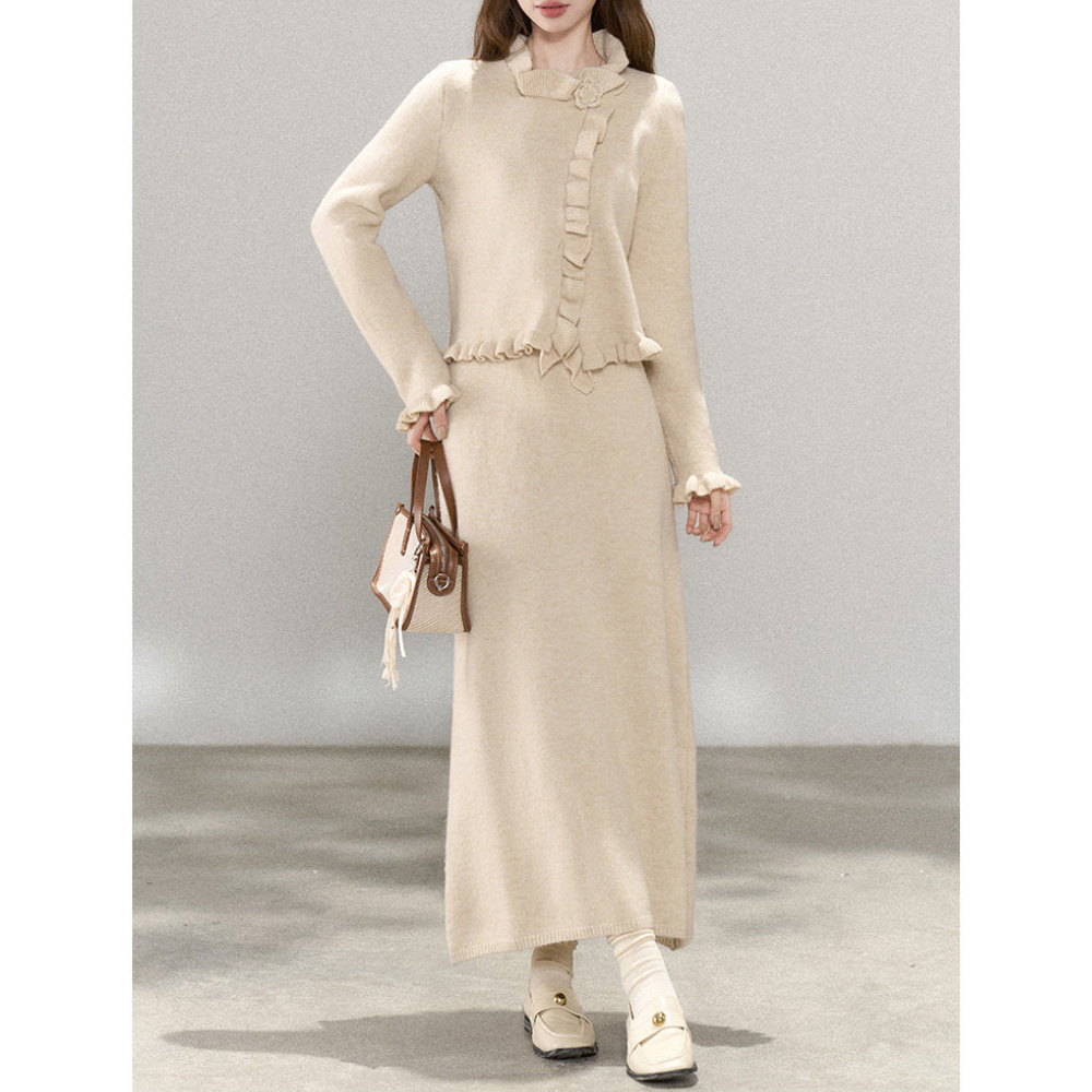フェミニンなフリルがアクセントのニットカーディガンとスカートのセットアップ。 やわらかく着心地の良いセットアップは、着るだけで統一感のある洗練されたスタイルが完成します。 襟元のフラワーモチーフがプレーンなデザインにさりげなく華やかさをプラスしてくれます。 それぞれ単品使いで着まわせるので、普段使いにも取り入れやすいアイテムです。 《カラー》 グレー/アイボリー/ダークレッド 《サイズ》 カーディガン S : 肩幅38cm 胸囲92cm 着丈55cm 袖丈63cm M : 肩幅39cm 胸囲96cm 着丈56cm 袖丈64cm L : 肩幅40cm 胸囲100cm 着丈57cm 袖丈65cm XL : 肩幅41cm 胸囲104cm 着丈58cm 袖丈66cm スカート S : 着丈85cm ウエスト68cm M : 着丈86cm ウエスト72cm L : 着丈87cm ウエスト76cm XL : 着丈88cm ウエスト80cm ※採寸方法により1~3cm程度の誤差がある場合がございます。 ※モデル 身長165cm 体重45kg(B76/W56/H85) Sサイズ着用 ◇サイズで迷ったらこちらをチェック https://harmonique.my.canva.site/dagieuhhs-e ◇商品を購入する前にこちらの【ご購入前に必ずお読みください】をご確認の上お買い求めください。 https://shop.harmonique.net/blog/2024/06/25/010751 《注意事項》 *harmoniqueではお客様からのご注文を受け、お客様の商品を製作・取り寄せしております。 *基本的にお取り寄せ商品となるため、発送までに《1~3週間前後》お時間をいただいております。 *ご覧いただいているPCやスマートフォンの画面により実物と多少色合いが異なる場合がございます。 *イメージ違いやサイズ違い等、その他お客様都合によりますキャンセル・返品交換はご遠慮ください。 トップページはこちら https://shop.harmonique.net/