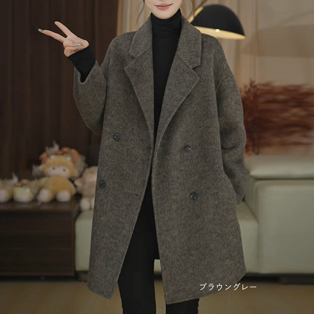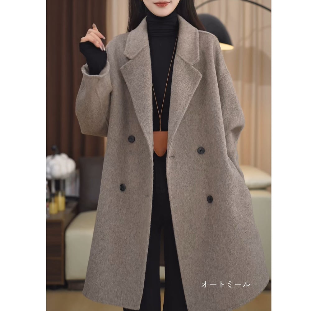ゆったりとした着心地が魅力のダブルブレストのコート。 なめらかな手触りの暖かい生地は、高品質の羊毛を両面に使用しております。 ヒップ丈のオーバーサイズシルエットは、どんなスタイルにも合わせやすく、こなれ感を演出。 さらにカッティングは肩をほっそりと見せてくれるデザインです。 普段使いはもちろん、オフィスシーンでも活躍する、着回し力抜群の一着です。 《カラー》 オートミール アイボリーホワイト ブリックオレンジ ブラック グレー ブラウングレー 《サイズ》 S~M : 胸囲116cm 着丈82cm 袖丈46cm L~XL : 胸囲124cm 着丈84cm 袖丈48cm ※採寸方法により1~3cmの誤差がある場合がございます。 参考体型 S~L :155~170cm 40~65kg L~XL :155~175cm 65~75kg 《素材》 羊毛 68.8%、他31.2% ◇サイズで迷ったらこちらをチェック https://harmonique.my.canva.site/dagieuhhs-e ◇商品を購入する前にこちらの【ご購入前に必ずお読みください】をご確認の上お買い求めください。 https://shop.harmonique.net/blog/2024/06/25/010751 《注意事項》 *harmoniqueではお客様からのご注文を受け、お客様の商品を製作・取り寄せしております。 *基本的にお取り寄せ商品となるため、発送までに《1~3週間前後》お時間をいただいております。 *ご覧いただいているPCやスマートフォンの画面により実物と多少色合いが異なる場合がございます。 *イメージ違いやサイズ違い等、その他お客様都合によりますキャンセル・返品交換はご遠慮ください。 トップページはこちら https://shop.harmonique.net/