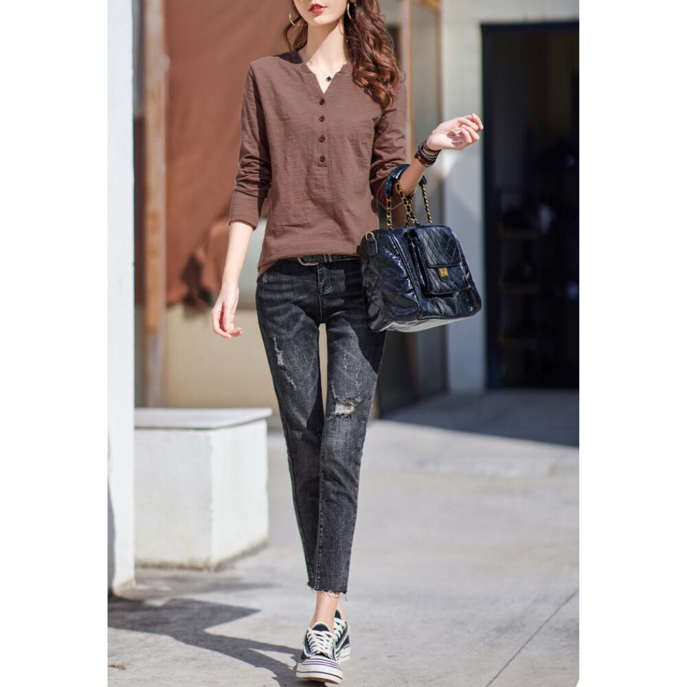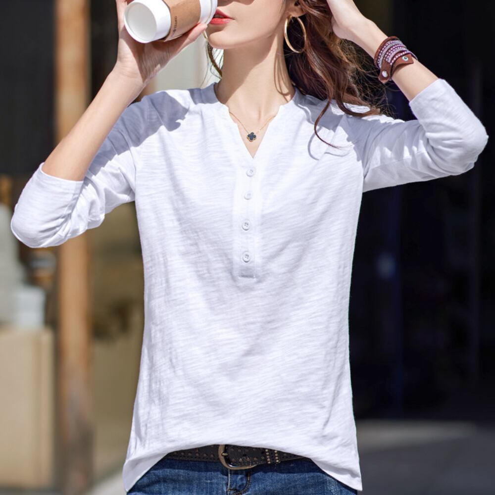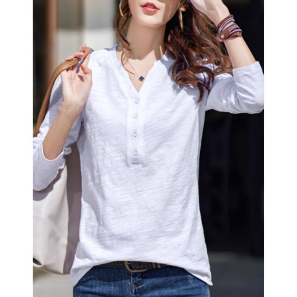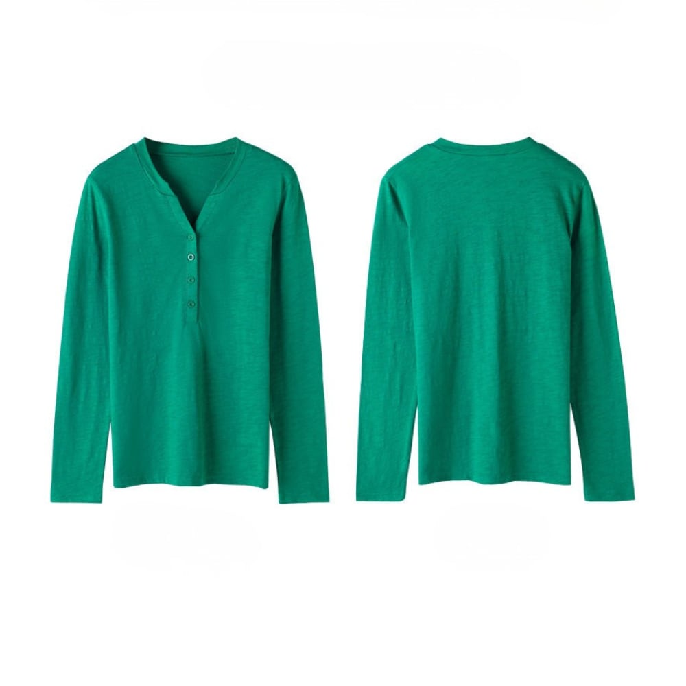 Vネックが首元を美しく見せるシックなボタンフロントシャツ。 カジュアルながらも上品な印象を与え、一枚で着るのはもちろん、ジャケットやカーディガンのインナーとしてもおすすめです。 シンプルなデザインなので、どんなボトムスにも合わせやすい一枚です。 素材は肌にも環境にも優しいバンブーコットン(竹綿)100%で作られ、吸湿性と抗菌性にも優れています。 《カラー》 ホワイト ネイビー グリーン ブラウン 《サイズ》 S : 肩幅37cm 胸囲90cm 着丈61cm 袖丈55cm 袖口幅10cm 参考体重40~50kg M : 肩幅38cm 胸囲94cm 着丈62cm 袖丈56cm 袖口幅10.5cm 参考体重50~55kg L : 肩幅39cm 胸囲98cm 着丈63cm 袖丈57cm 袖口幅11cm 参考体重55~60kg XL : 肩幅40cm 胸囲102cm 着丈64cm 袖丈58cm 袖口幅11.5cm 参考体重60~65kg 2XL : 肩幅41cm 胸囲106cm 着丈65cm 袖丈59cm 袖口幅12cm 参考体重65~73kg 3XL : 肩幅42cm 胸囲110cm 着丈65cm 袖丈59cm 袖口幅12.5cm 参考体重73~80kg ※採寸方法により1~3cmの誤差がある場合がございます。 《素材》 竹綿100% ◇人気のおすすめアイテムをもっと見る https://shop.harmonique.net/categories/5911182 ◇商品を購入する前にこちらの【ご購入前に必ずお読みください】をご確認の上お買い求めください。 https://shop.harmonique.net/blog/2024/06/25/010751 《注意事項》 *harmoniqueではお客様からのご注文を受け、お客様の商品を製作・取り寄せしております。 *基本的にお取り寄せ商品となるため、発送までに《1~3週間前後》お時間をいただいております。 *ご覧いただいているPCやスマートフォンの画面により実物と多少色合いが異なる場合がございます。 *イメージ違いやサイズ違い等、その他お客様都合によりますキャンセル・返品交換はご遠慮ください。 トップページはこちら https://shop.harmonique.net/