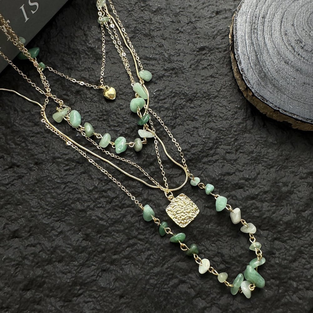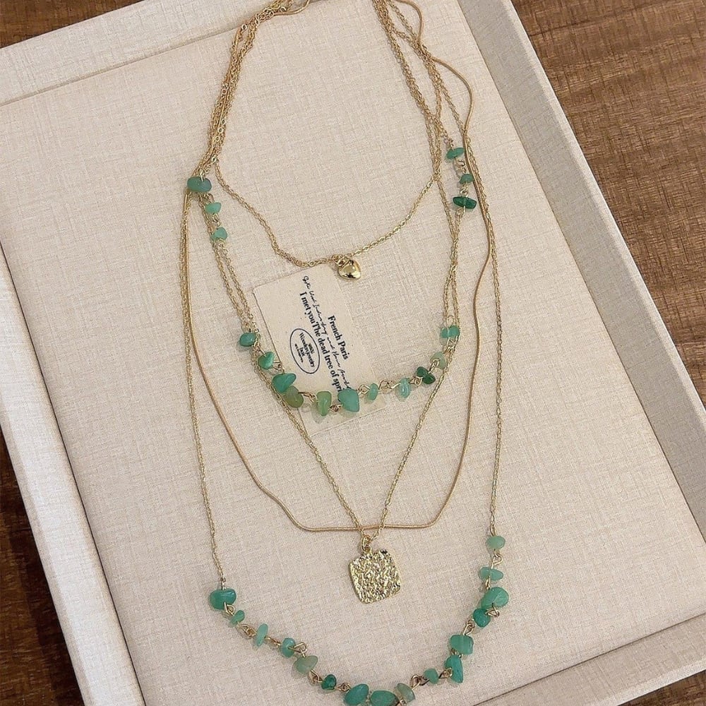 レイヤード レトログラスビーズネックレス W10433