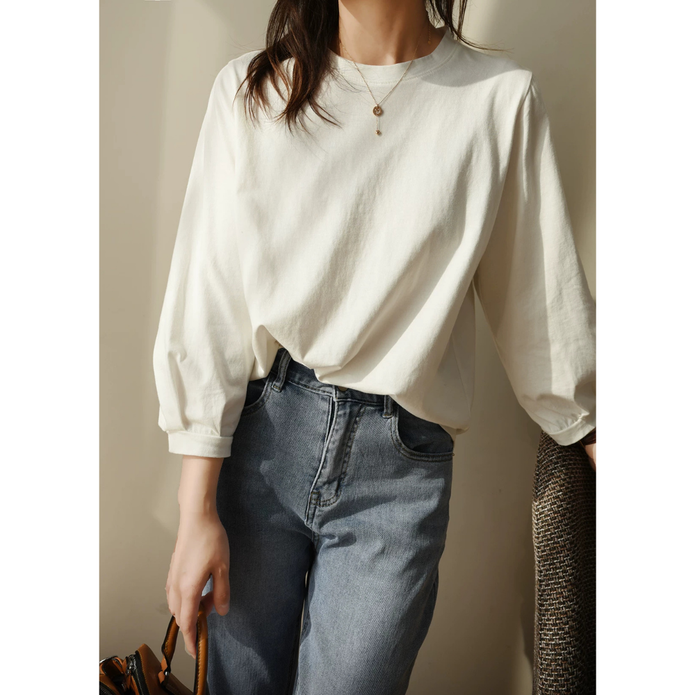 七分丈のバルーン袖で手首をほっそり見せる、きれいめクルーネックカットソー。 肌触りの良いピュアコットンで、女性らしいラインを引き立てるベーシックなデザインです。 程よいゆとりのあるシルエットで、気になる体型をカバーします。 長めの丈感は一枚でもレイヤードスタイルにも最適。 デニムやスカートと合わせて、カジュアルにも上品にも様々な表情を楽しめます。 《カラー》 ブラック ホワイト イエロー 《サイズ》 フリーサイズ : 肩幅39cm 胸囲108cm 着丈67cm 袖丈46cm ※採寸方法により1~3cmの誤差がある場合がございます。 ※モデル 身長168cm 体重50kg 《素材》 綿100% ◇人気のおすすめアイテムをもっと見る https://shop.harmonique.net/categories/5911182 ◇商品を購入する前にこちらの【ご購入前に必ずお読みください】をご確認の上お買い求めください。 https://shop.harmonique.net/blog/2024/06/25/010751 《注意事項》 *harmoniqueではお客様からのご注文を受け、お客様の商品を製作・取り寄せしております。 *基本的にお取り寄せ商品となるため、発送までに《1~3週間前後》お時間をいただいております。 *ご覧いただいているPCやスマートフォンの画面により実物と多少色合いが異なる場合がございます。 *イメージ違いやサイズ違い等、その他お客様都合によりますキャンセル・返品交換はご遠慮ください。 トップページはこちら https://shop.harmonique.net/