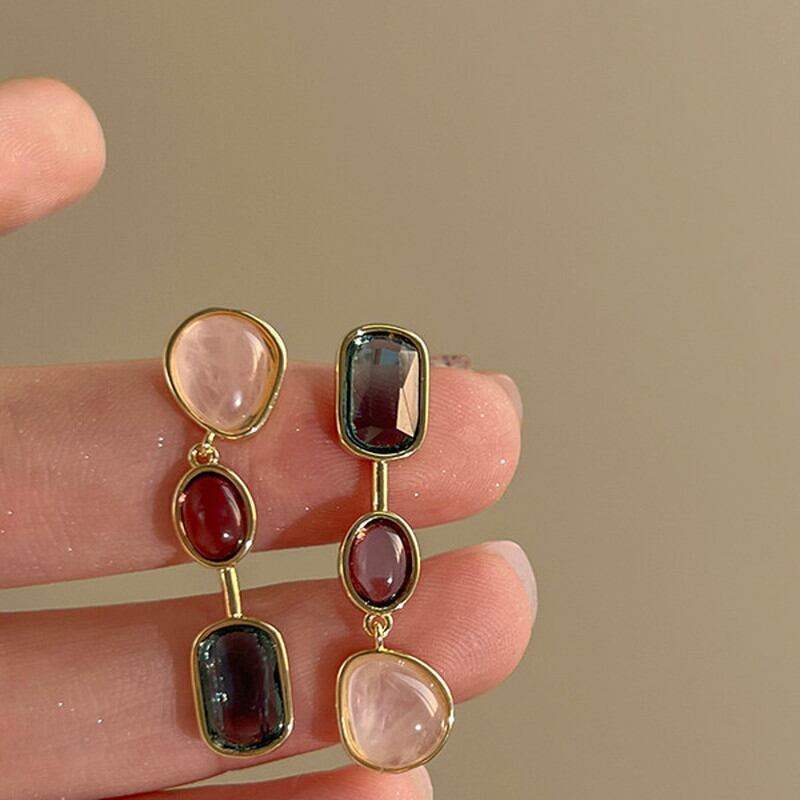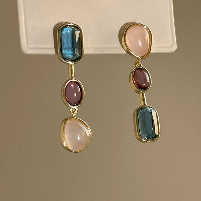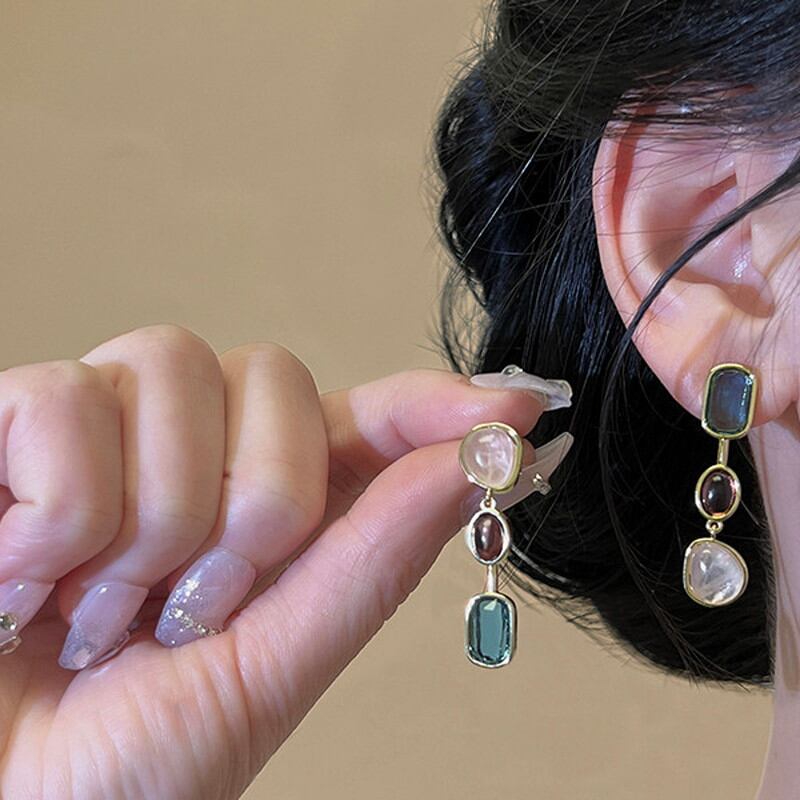 華やかでカラフルなデザインが特徴のアシンメントリーストーンイヤーアクセサリー。