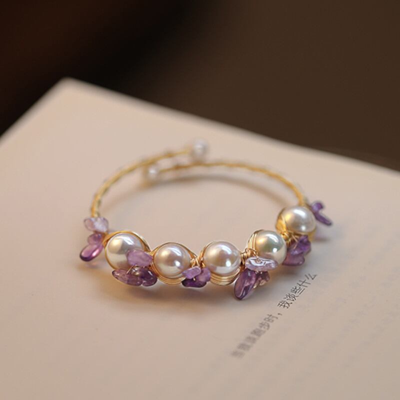 アメジストとパールが奏でる輝きは、あなたの手元を華やかに彩ります。