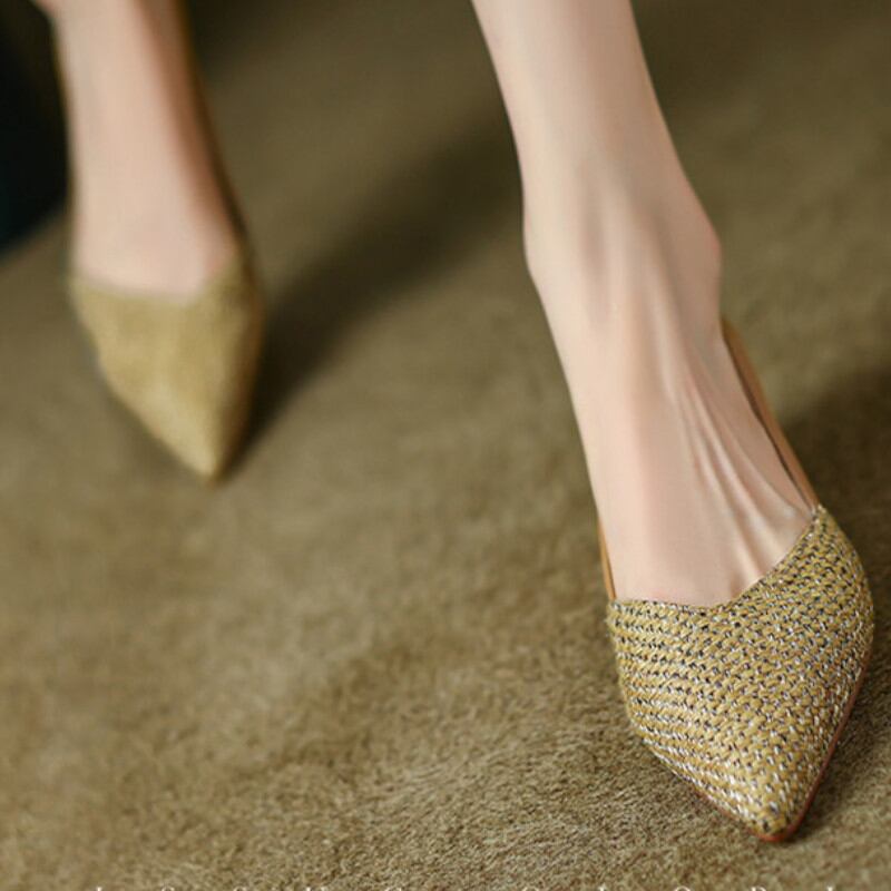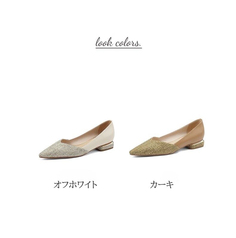 つま先とヒールの涼し気なデザインが特徴的なポインテッドトゥフラットパンプス。 シンプルながらも足元をスタイリッシュに演出してくれるので、どんなコーディネートにもマッチします。 歩きやすいフラットヒールで、長時間の移動や立ち仕事でも快適に履いていただけます。 仕事やデイリー使い、パーティーシーンまで幅広く対応してくれる優秀な一足。 《サイズ》 35(22.5cm):甲回り7.2cm ヒール高さ1-3cm 36(23.0cm):甲回り7.6cm ヒール高さ1-3cm 37(23.5cm):甲回り8cm ヒール高さ1-3cm 38(24.0cm):甲回り8.4cm ヒール高さ1-3cm 39(24.5cm):甲回り8.8cm ヒール高さ1-3cm 40(25.0cm):甲回り9cm ヒール高さ1-3cm 《カラー》 オフホワイト/カーキ 《素材》 ソール:TPRラバーソール インソール素材: ピッグスキン 主なスプライス素材: 布 ◇人気のおすすめアイテムをもっと見る https://shop.harmonique.net/categories/5911182 ◇商品を購入する前にこちらの【ご購入前に必ずお読みください】をご確認の上お買い求めください。 https://shop.harmonique.net/blog/2024/06/25/010751 《注意事項》 *harmoniqueではお客様からのご注文を受け、お客様の商品を製作・取り寄せております。 *基本的にお取り寄せ商品となるため、発送までに《1~3週間前後》お時間をいただいております。 *ご覧いただいているPCやスマートフォンの画面により実物と多少色合いが異なる場合がございます。 *イメージ違いやサイズ違い等、その他お客様都合によりますキャンセル・返品交換はご遠慮ください。 トップページはこちら https://shop.harmonique.net/