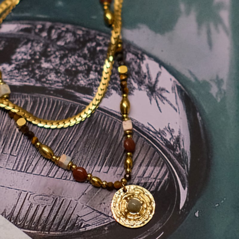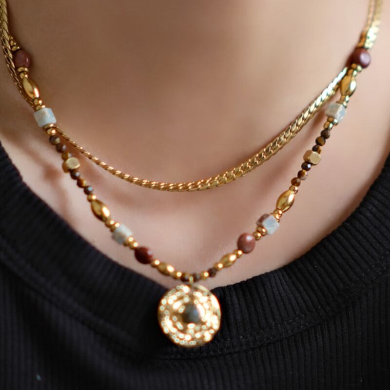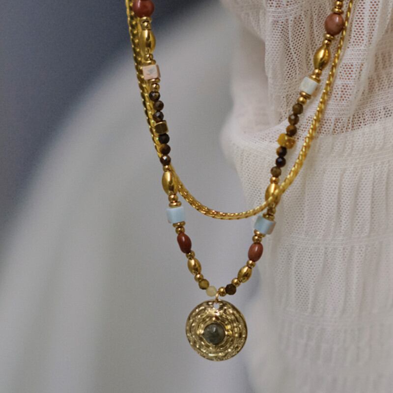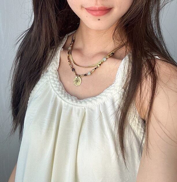 繊細なデザインと高品質な素材でおしゃれを演出する天然石ダブルネックレス。