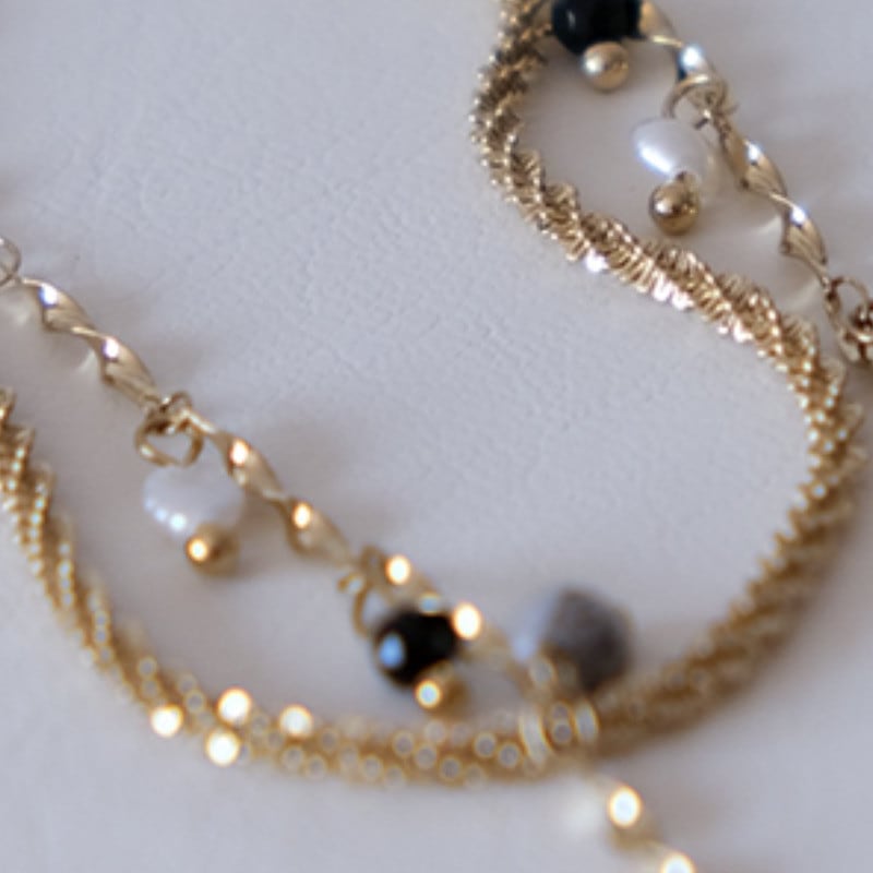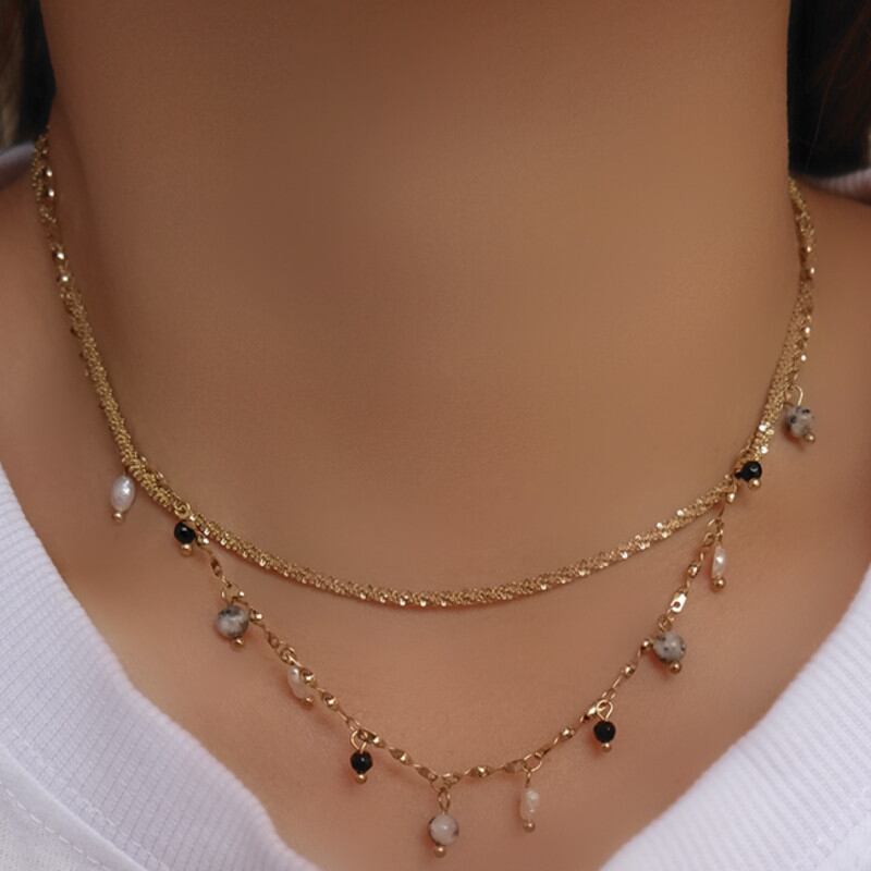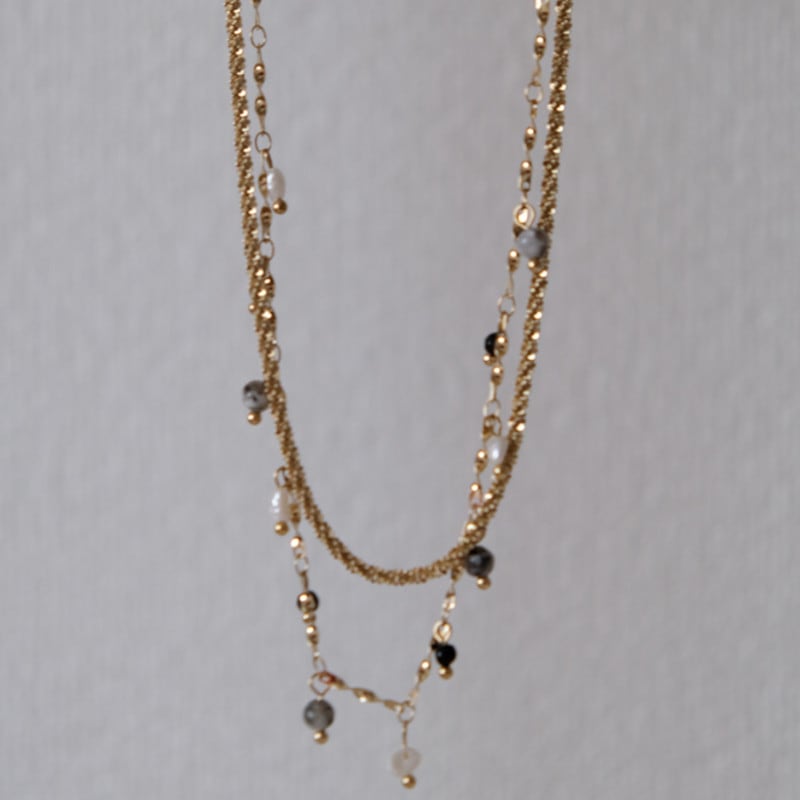 シンプルでありながらもエレガントさを漂わせるゴールドダブルネックレス。