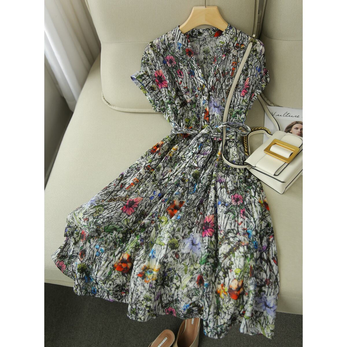 春夏にぴったりの爽やかな印象を与える花柄グリーンワンピース。 ベースに可愛らしい花柄が施され、女性らしいVネックが魅力的。 ウエストのリボンがリラックス感を演出し、デートやお出かけにぴったりの一着です。 《サイズ》 S:肩幅39cm 胸囲97cm ウエスト67cm 総丈100cm M:肩幅40cm 胸囲101cm ウエスト71cm 総丈101cm L:肩幅41cm 胸囲105cm ウエスト75cm 総丈102cm XL:肩幅42cm 胸囲109cm ウエスト79cm 総丈103cm ※採寸方法により1~3cmの誤差がある場合がございます ※ウエストはゴム仕様ではありません ◇サイズで迷ったらこちらをチェック https://harmonique.my.canva.site/dagieuhhs-e ◇商品を購入する前にこちらの【ご購入前に必ずお読みください】をご確認の上お買い求めください。 https://shop.harmonique.net/blog/2024/06/25/010751 《注意事項》 *harmoniqueではお客様からのご注文を受け、お客様の商品を製作・取り寄せております。 *基本的にお取り寄せ商品となるため、発送までに《1~3週間前後》お時間をいただいております。 *ご覧いただいているPCやスマートフォンの画面により実物と多少色合いが異なる場合がございます。 *イメージ違いやサイズ違い等、その他お客様都合によりますキャンセル・返品交換はご遠慮ください。 トップページはこちら https://shop.harmonique.net/