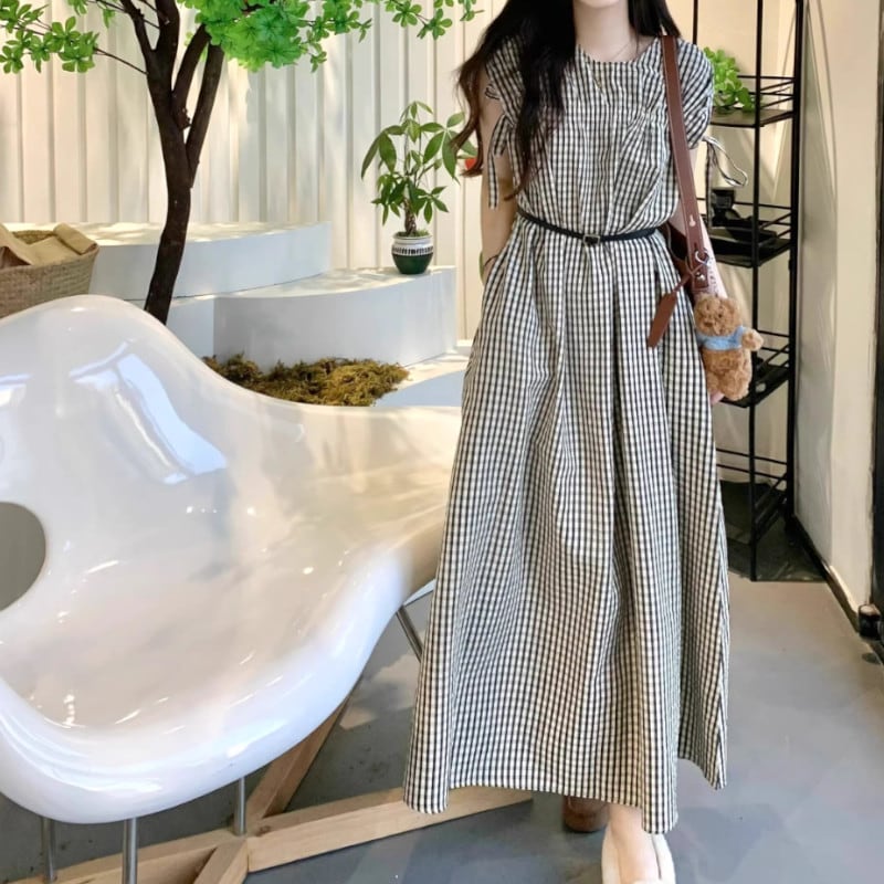 ギンガムチェックノースリーブワンピース A00180