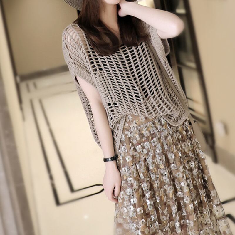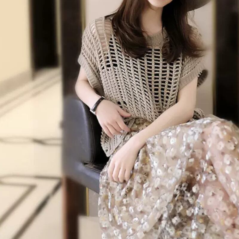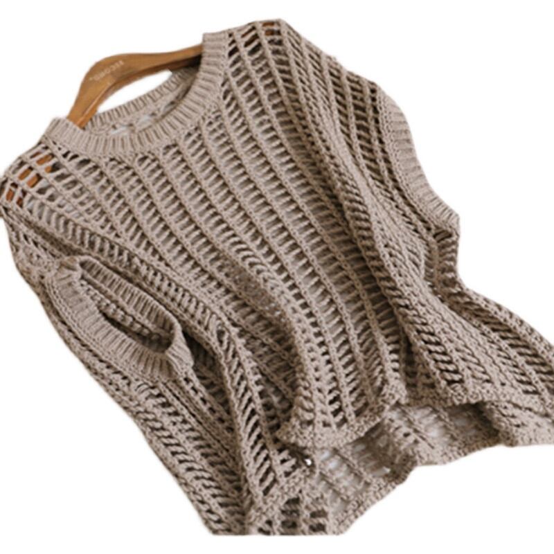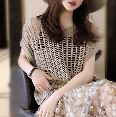 涼しげなルーズシルエットが特徴のルーズかぎ編みニットトップ。