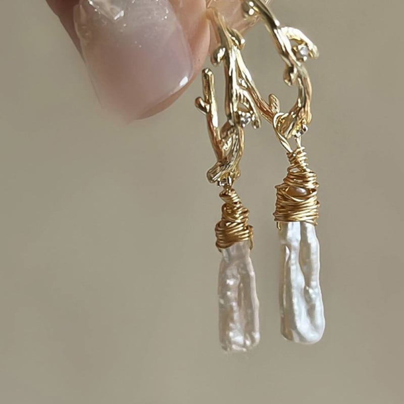 煌めく金色の輝きと、不規則な形状のバロックパールが絶妙にマッチした、大人の女性にぴったりのジュエリーです。