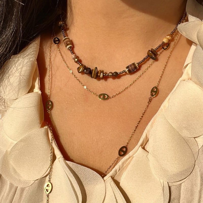 天然石ヴィンテージビーズネックレス& ゴールドチタンネックレスの2点セット W10210
