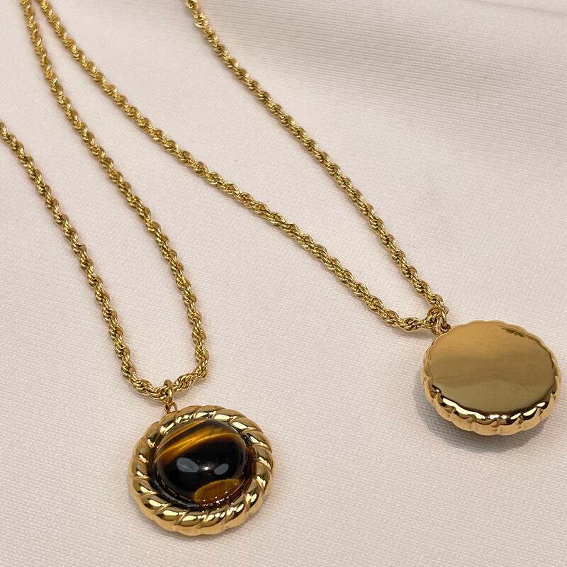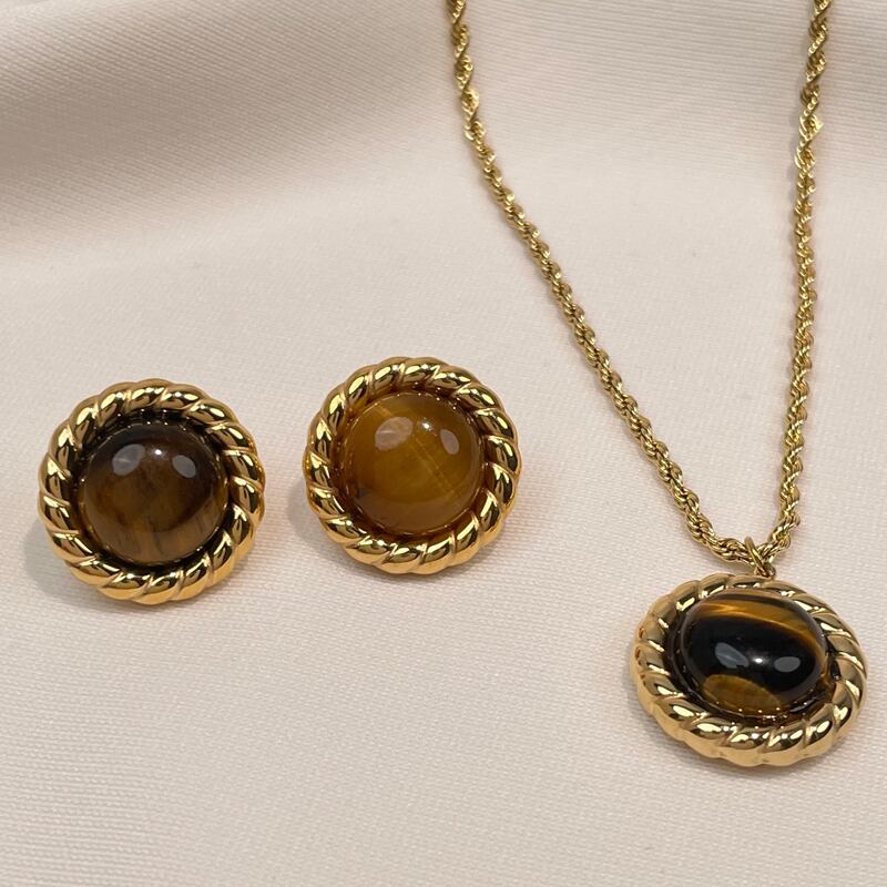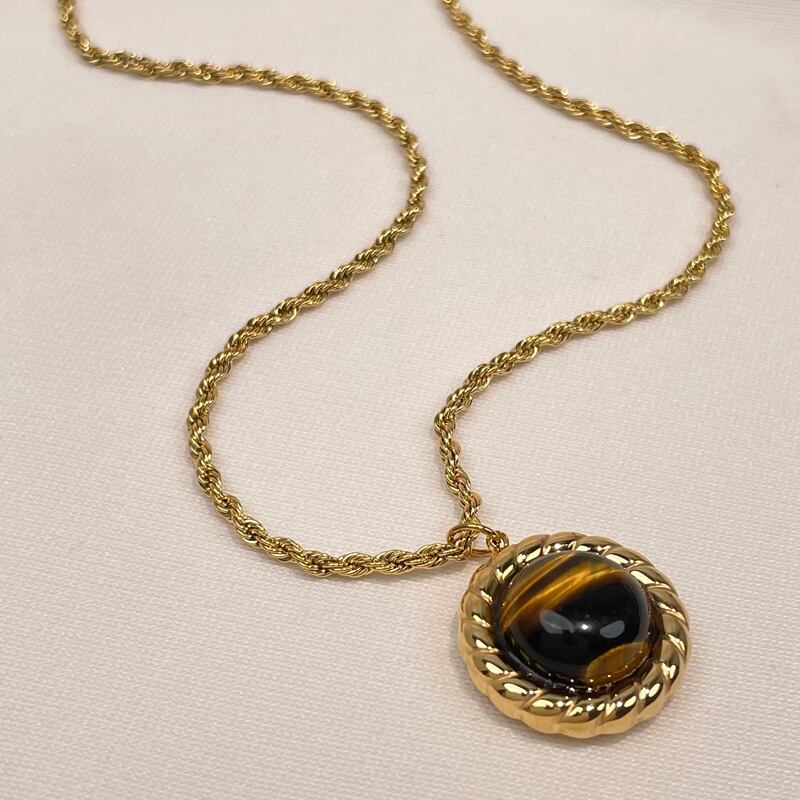 タイガーアイストーンの輝きが際立つ、洗練されたネックレス。