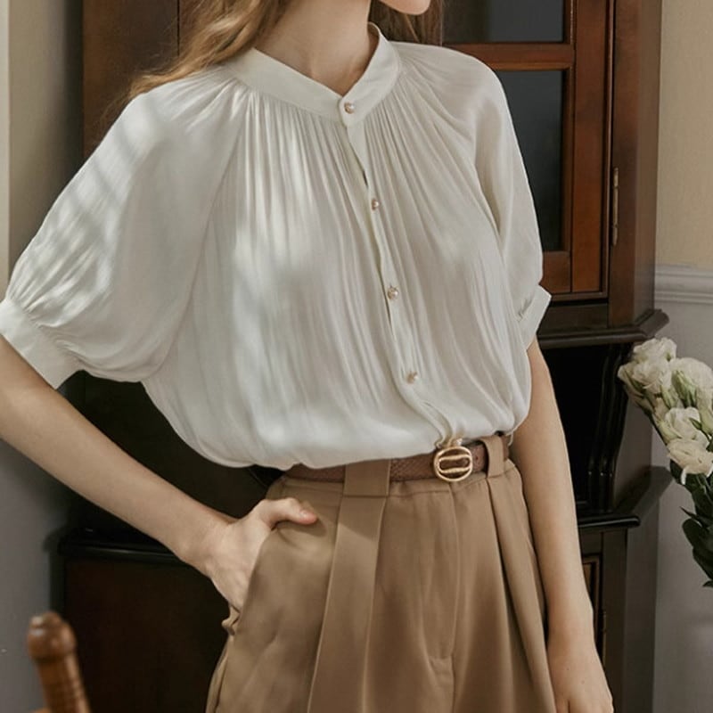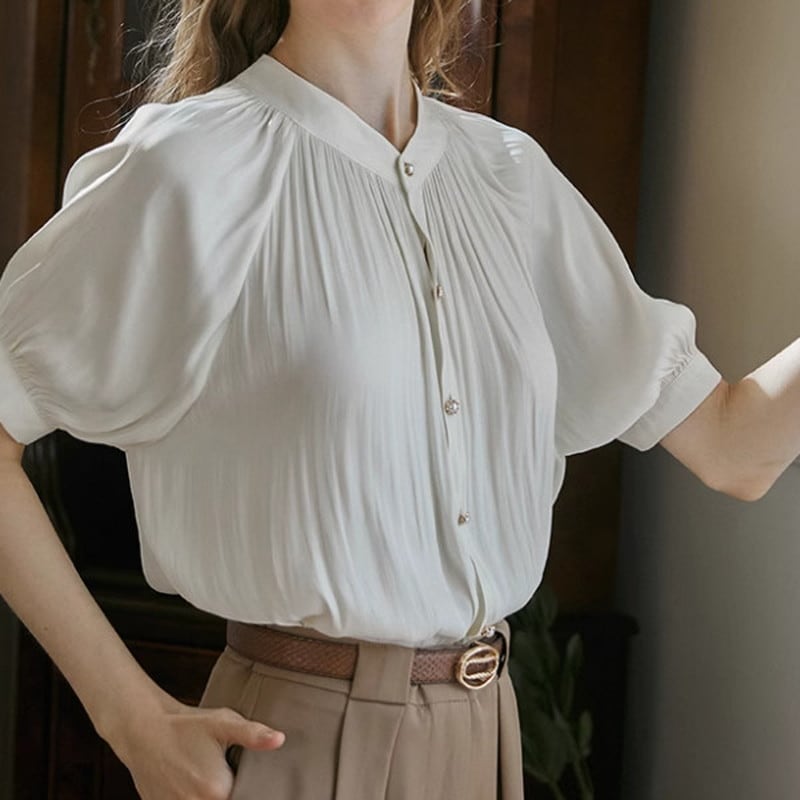 華やかな印象を与えるプリーツ入りのシフォンシャツ。 柔らかい素材で軽やかな着心地が自慢です。 シンプルながらもキレイめなデザインで、オフィスからデートまで幅広いシーンで活躍してくれます。 《カラー》 ホワイト 《サイズ》 S:着丈64cm 肩袖丈38cm 袖口24cm M:着丈65cm 肩袖丈39cm 袖口26cm L:着丈66cm 肩袖丈40cm 袖口28cm ※採寸方法により多少の誤差がある場合がございます ◇人気のおすすめアイテムをもっと見る https://shop.harmonique.net/categories/5911182 ◇商品を購入する前にこちらの【ご購入前に必ずお読みください】をご確認の上お買い求めください。 https://shop.harmonique.net/blog/2024/06/25/010751 《注意事項》 *harmoniqueではお客様からのご注文を受け、お客様の商品を製作・取り寄せております。 *基本的にお取り寄せ商品となるため、発送までに《1~3週間前後》お時間をいただいております。 *ご覧いただいているPCやスマートフォンの画面により実物と多少色合いが異なる場合がございます。 *イメージ違いやサイズ違い等、その他お客様都合によりますキャンセル・返品交換はご遠慮ください。 トップページはこちら https://shop.harmonique.net/