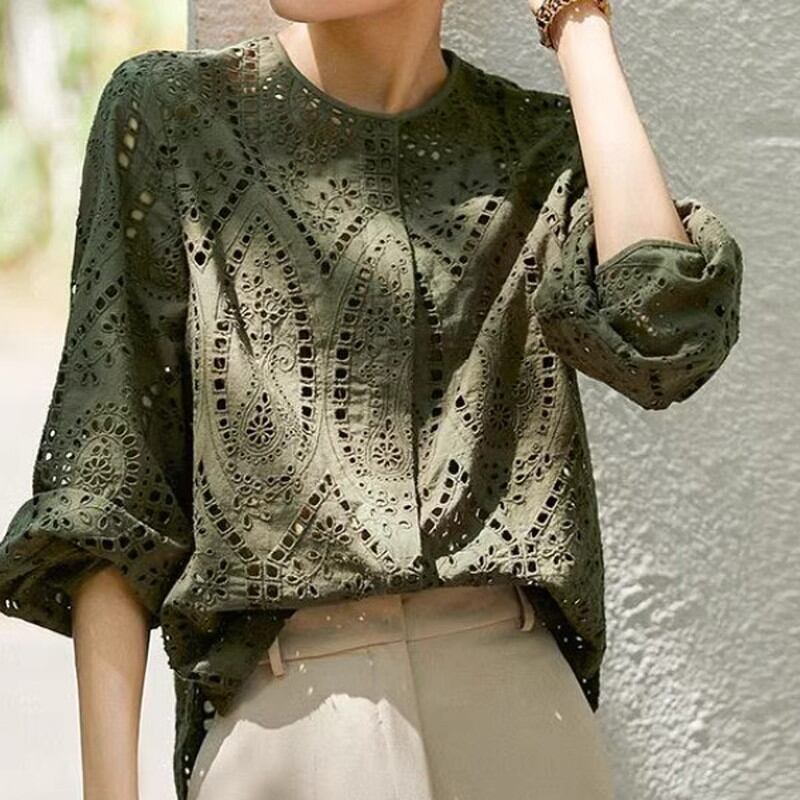 エレガントな印象を演出する長袖刺繍ブラウス。 華やかな刺繍デザインがポイントで、どこかノスタルジックな雰囲気を醸し出しています。 《カラー》 ベージュ/グリーン 《サイズ》 S:肩幅38.5cm 胸囲98cm 着丈61cm 袖丈56cm M:肩幅39.5cm 胸囲102cm 着丈62cm 袖丈57cm L:肩幅40.5cm 胸囲106cm 着丈63cm 袖丈58cm XL:肩幅41.5cm 胸囲110cm 着丈64cm 袖丈59cm ※採寸方法により多少の誤差がある場合がございます 《素材》 綿 ◇人気のおすすめアイテムをもっと見る https://shop.harmonique.net/categories/5911182 ◇商品を購入する前にこちらの【ご購入前に必ずお読みください】をご確認の上お買い求めください。 https://shop.harmonique.net/blog/2024/06/25/010751 《注意事項》 *harmoniqueではお客様からのご注文を受け、お客様の商品を製作・取り寄せております。 *基本的にお取り寄せ商品となるため、発送までに《1~3週間前後》お時間をいただいております。 *ご覧いただいているPCやスマートフォンの画面により実物と多少色合いが異なる場合がございます。 *イメージ違いやサイズ違い等、その他お客様都合によりますキャンセル・返品交換はご遠慮ください。 トップページはこちら https://shop.harmonique.net/