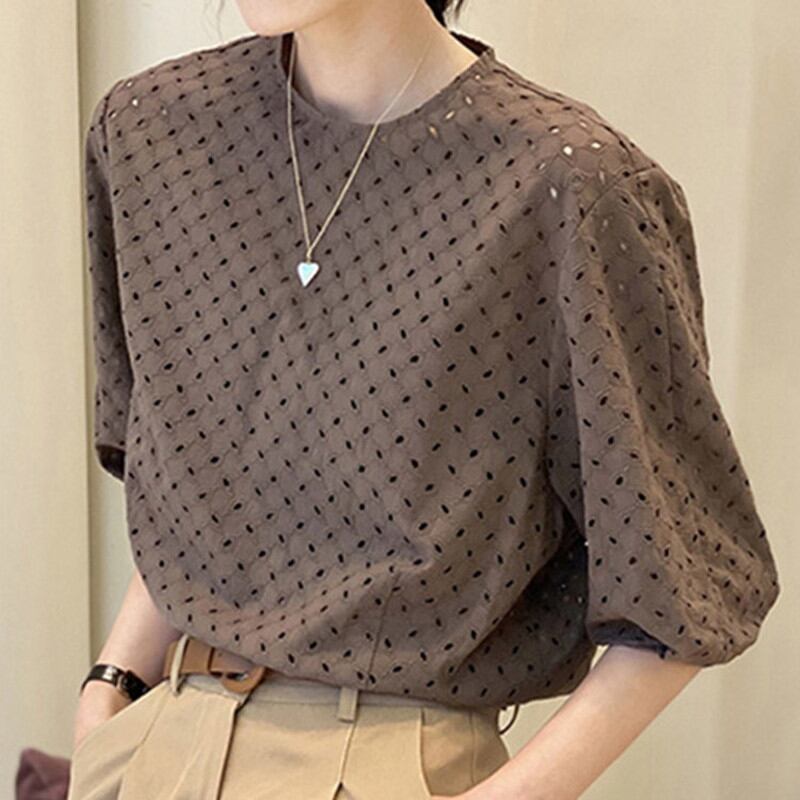 トレンドのパフスリーブと穴あきデザインがポイントのおしゃれなブラウス。 上品なブラウンカラーで、どんなボトムスとも相性抜群です。 《カラー》 ブラウン 《サイズ》 S:肩幅37cm 胸囲80cm M:肩幅38cm 胸囲84cm L:肩幅39cm 胸囲88cm XL:肩幅40cm 胸囲90cm 2XL:肩幅41cm 胸囲95cm 3XL:肩幅42cm 胸囲100cm ※採寸方法により多少の誤差がある場合がございます 《素材》 綿 ◇人気のおすすめアイテムをもっと見る https://shop.harmonique.net/categories/5911182 ◇商品を購入する前にこちらの【ご購入前に必ずお読みください】をご確認の上お買い求めください。 https://shop.harmonique.net/blog/2024/06/25/010751 《注意事項》 *harmoniqueではお客様からのご注文を受け、お客様の商品を製作・取り寄せております。 *基本的にお取り寄せ商品となるため、発送までに《1~3週間前後》お時間をいただいております。 *ご覧いただいているPCやスマートフォンの画面により実物と多少色合いが異なる場合がございます。 *イメージ違いやサイズ違い等、その他お客様都合によりますキャンセル・返品交換はご遠慮ください。 トップページはこちら https://shop.harmonique.net/