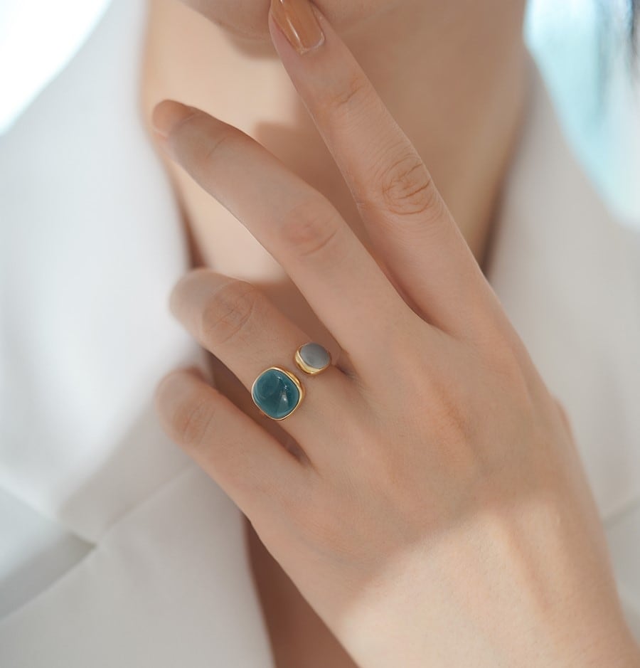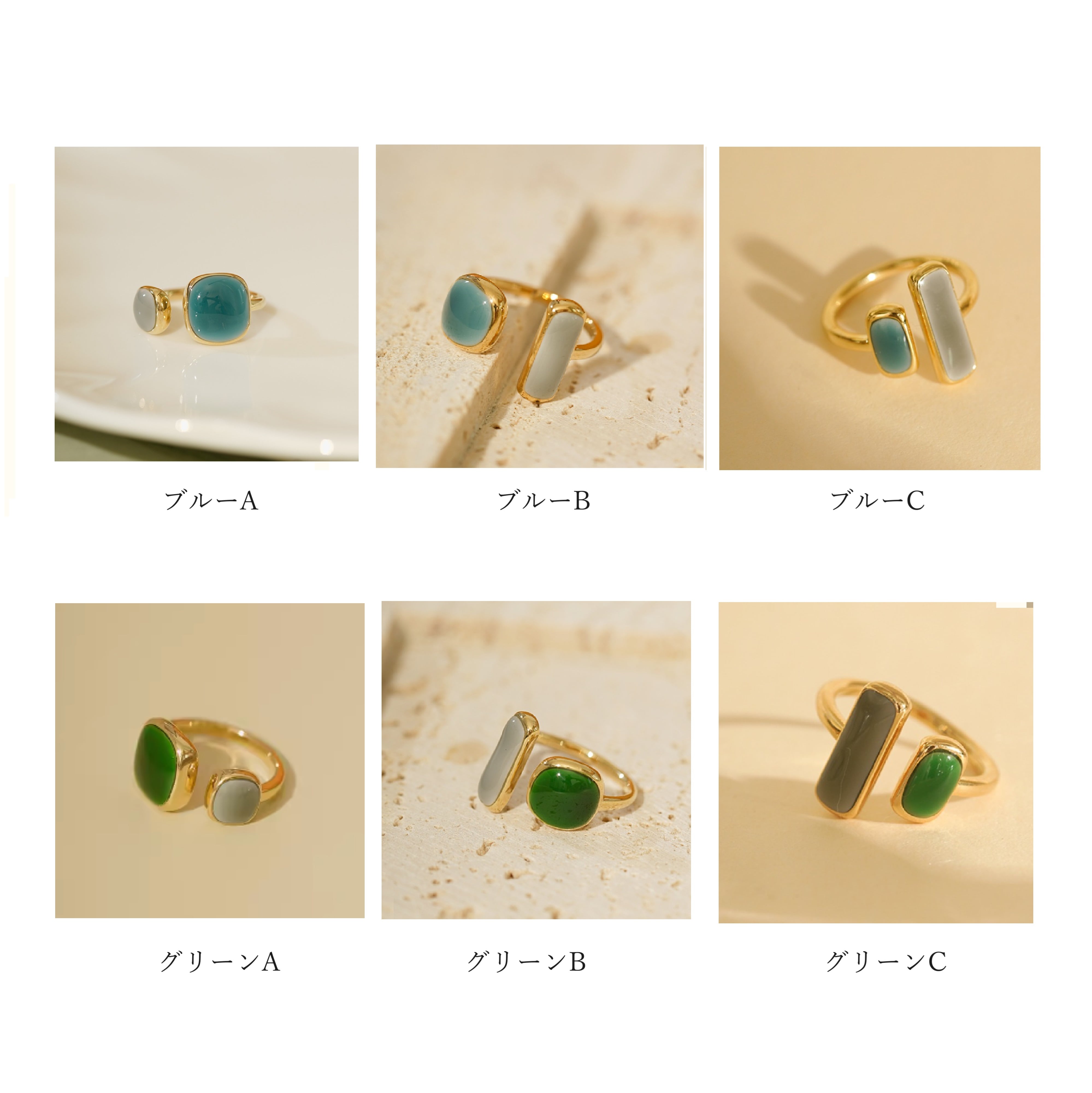 深みのある色合いが美しいオープンリング。 さまざまなストーンの組み合わせからお選びください。 《サイズ》 フリーサイズ 《カラー》 ブルーA/ブルーB/ブルーC/グリーンA/グリーンB/グリーンC 《素材》 真鍮、エナメル釉薬、銅、18Kメッキ ◇人気のおすすめアイテムをもっと見る https://shop.harmonique.net/categories/5911182 ◇商品を購入する前にこちらの【ご購入前に必ずお読みください】をご確認の上お買い求めください。 https://shop.harmonique.net/blog/2024/06/25/010751 《注意事項》 *harmoniqueではお客様からのご注文を受け、お客様の商品を製作・取り寄せております。 *基本的にお取り寄せ商品となるため、発送までに《1~3週間前後》お時間をいただいております。 *ご覧いただいているPCやスマートフォンの画面により実物と多少色合いが異なる場合がございます。 *イメージ違いやサイズ違い等、その他お客様都合によりますキャンセル・返品交換はご遠慮ください。 トップページはこちら https://shop.harmonique.net/
