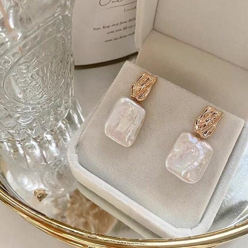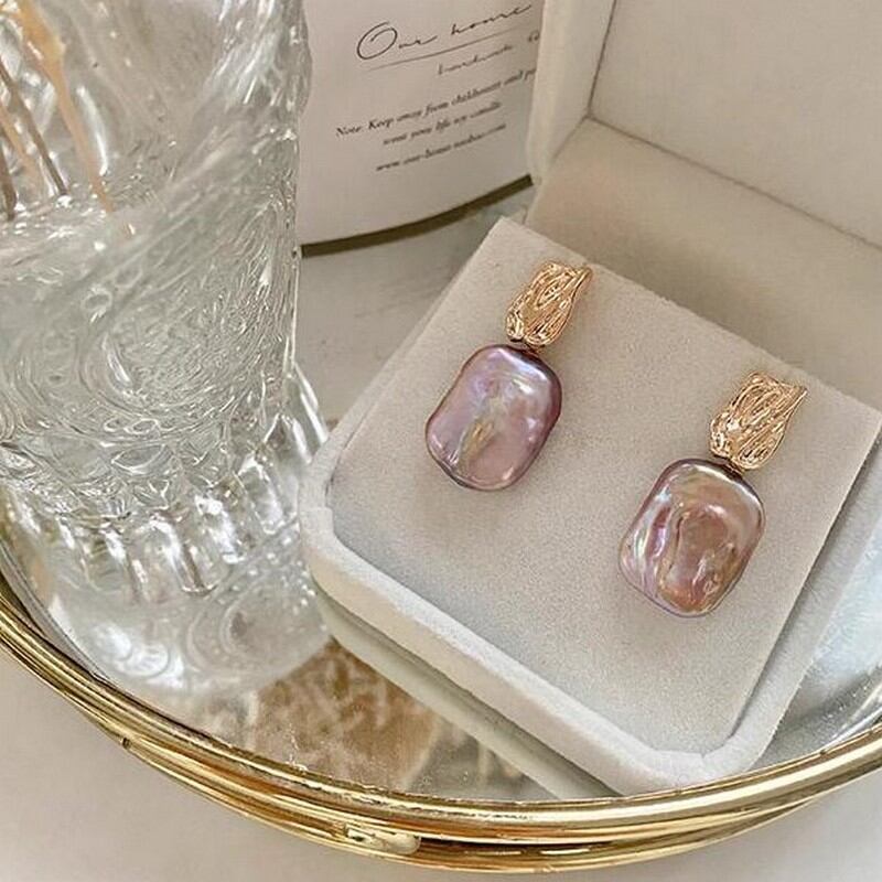 ナチュラルスクエアバロックピアス W10087