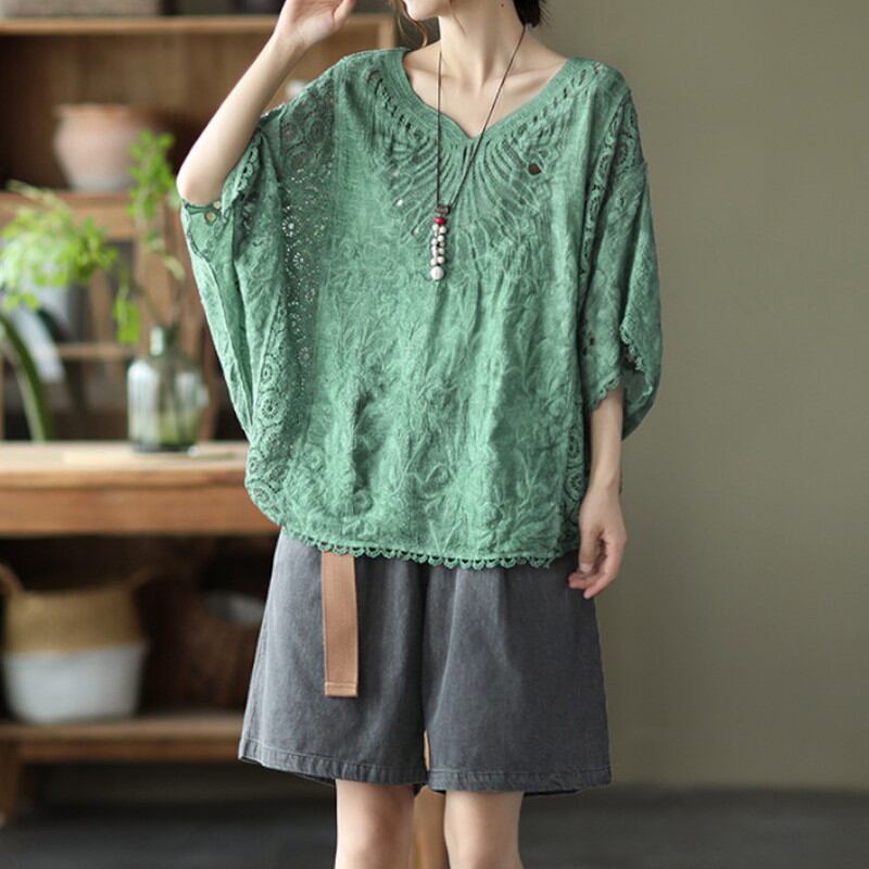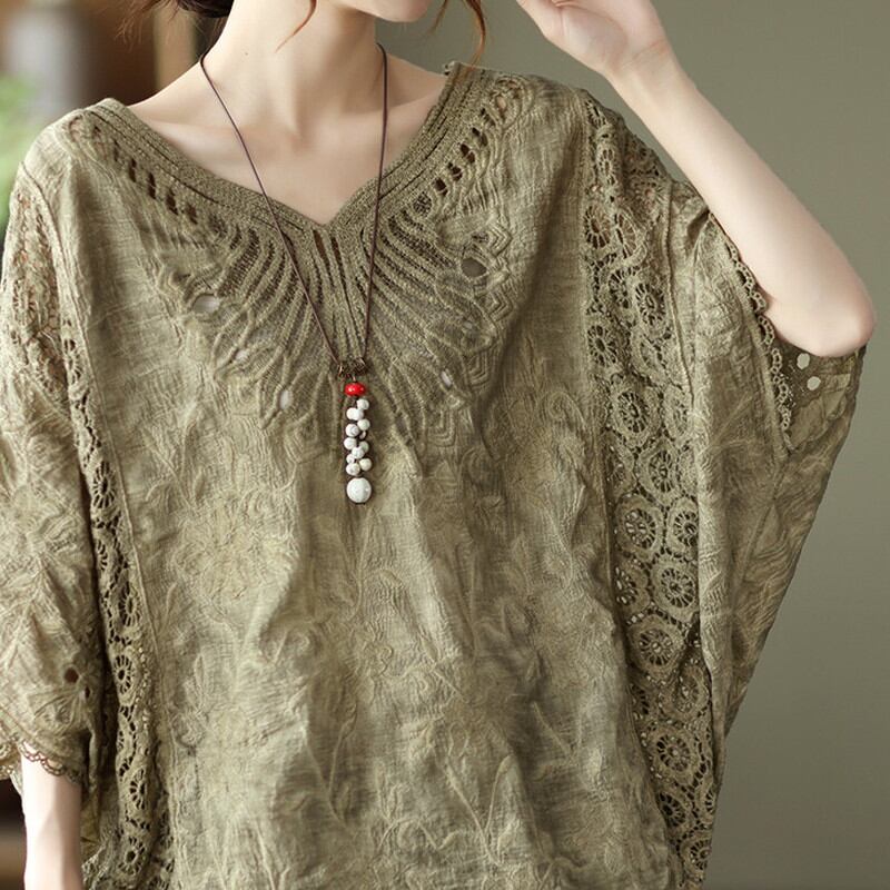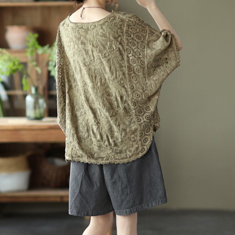ルーズなシルエットとエレガントなレース使いが魅力のバットスリーブブラウス。 デニムと合わせるカジュアルなコーディネートも、ワイドパンツやスカートと合わせるきれいめスタイルもおしゃれに決まります。 オフィスからデートまで、幅広いシーンで活躍してくれる一枚です。 《カラー》 Aグレー/Bホワイト/Cベージュ/Dブラウン/Eカーキグリーン/Fグリーン 《サイズ》 F:着丈64-68cm 肩袖丈40cm ※採寸方法により1~3cm程度の誤差がある場合がございます ※モデル 身長163cm Fサイズ着用 《素材》 綿 ◇人気のおすすめアイテムをもっと見る https://shop.harmonique.net/categories/5911182 ◇商品を購入する前にこちらの【ご購入前に必ずお読みください】をご確認の上お買い求めください。 https://shop.harmonique.net/blog/2024/06/25/010751 《注意事項》 *harmoniqueではお客様からのご注文を受け、お客様の商品を製作・取り寄せております。 *基本的にお取り寄せ商品となるため、発送までに《1~3週間前後》お時間をいただいております。 *ご覧いただいているPCやスマートフォンの画面により実物と多少色合いが異なる場合がございます。 *イメージ違いやサイズ違い等、その他お客様都合によりますキャンセル・返品交換はご遠慮ください。 トップページはこちら https://shop.harmonique.net/