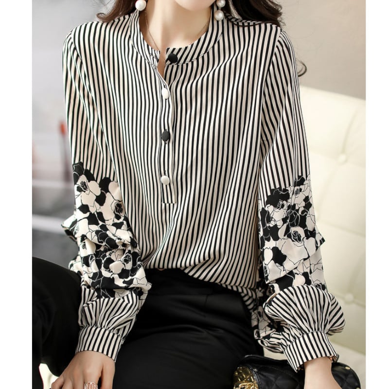 《無料サイズ交換対象》 大人かわいいストライプ切り替え花柄モノトーンプリントブラウス。 上品な花柄とモノトーンのストライプが絶妙に組み合わさった一枚は、オフィスからデートまで幅広いシーンで活躍します。 《カラー》 モノトーン 《サイズ》 S:肩幅37.5cm 胸囲98cm 着丈61.3cm 袖丈54cm M:肩幅38.5cm 胸囲102cm 着丈62cm 袖丈55cm L:肩幅39.5cm 胸囲106cm 着丈62.7cm 袖丈56cm XL:肩幅40.5cm 胸囲110cm 着丈63.4cm 袖丈57cm ※採寸方法により1~3cmの誤差がある場合がございます。 ※モデル 身長172cm Lサイズ着用 《素材》 ポリエステル ◇人気のおすすめアイテムをもっと見る https://shop.harmonique.net/categories/5911182 ◇商品を購入する前にこちらの【ご購入前に必ずお読みください】をご確認の上お買い求めください。 https://shop.harmonique.net/blog/2024/06/25/010751 ◇《無料サイズ交換対象》について 詳しくはこちら https://shop.harmonique.net/blog/2025/09/20/180024 《注意事項》 *harmoniqueではお客様からのご注文を受け、お客様の商品を製作・取り寄せしております。 *基本的にお取り寄せ商品となるため、発送までに《1~3週間前後》お時間をいただいております。 *ご覧いただいているPCやスマートフォンの画面により実物と多少色合いが異なる場合がございます。 *イメージ違いやサイズ違い等、その他お客様都合によりますキャンセル・返品交換はご遠慮ください。 トップページはこちら https://shop.harmonique.net/