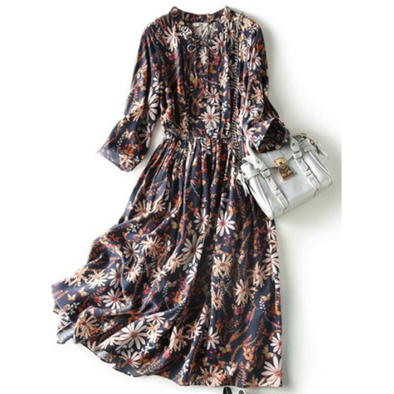 《無料サイズ交換対象》 上品な花柄プリントが特徴の七分袖ワンピース。 落ち着いたネイビーカラーが大人可愛い印象を与え、上品な雰囲気を演出します。 《カラー》 ネイビー 《サイズ》 M:肩幅39cm 胸囲96cm 総丈113cm 袖丈58cm L:肩幅40cm 胸囲100cm 総丈114cm 袖丈59cm XL:肩幅41cm 胸囲104cm 総丈115cm 袖丈59.5cm 2XL:肩幅42.5cm 胸囲110cm 総丈116cm 袖丈60cm 3XL:肩幅44cm 胸囲116cm 総丈117cm 袖丈60.5cm 4XL:肩幅45.5cm 胸囲122cm 総丈118cm 袖丈61cm ※採寸方法により1~3cm程度の誤差がある場合がございます。 《素材》 ポリエステル 他 ◇人気のおすすめアイテムをもっと見る https://shop.harmonique.net/categories/5911182 ◇商品を購入する前にこちらの【ご購入前に必ずお読みください】をご確認の上お買い求めください。 https://shop.harmonique.net/blog/2024/06/25/010751 ◇《無料サイズ交換対象》について 詳しくはこちら https://shop.harmonique.net/blog/2025/09/20/180024 《注意事項》 *harmoniqueではお客様からのご注文を受け、お客様の商品を製作・取り寄せしております。 *基本的にお取り寄せ商品となるため、発送までに《1~3週間前後》お時間をいただいております。 *ご覧いただいているPCやスマートフォンの画面により実物と多少色合いが異なる場合がございます。 *イメージ違いやサイズ違い等、その他お客様都合によりますキャンセル・返品交換はご遠慮ください。 トップページはこちら https://shop.harmonique.net/