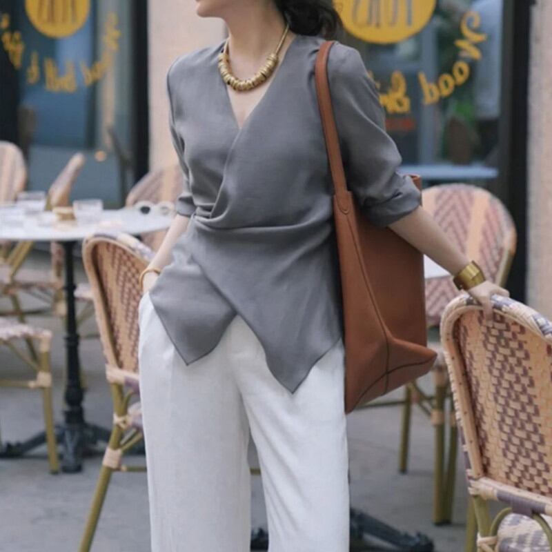 シンプルなデザインが魅力のVネック五分袖グレーシャツ。 Vネックが女性らしいシルエットを演出し、袖丈がちょうど良い長さなので季節の変わり目に活躍します。 グレーの落ち着いたカラーはどんなボトムスとも相性抜群で、コーディネートの幅が広がります。 《カラー》 グレー 《サイズ》 S:肩幅39cm 胸囲102cm 着丈55cm M:肩幅40cm 胸囲106cm 着丈56cm L:肩幅41cm 胸囲110cm 着丈57cm XL:肩幅42cm 胸囲114cm 着丈58cm ※採寸方法により1~3cmの誤差がある場合がございます。 ◇人気のおすすめアイテムをもっと見る https://shop.harmonique.net/categories/5911182 ◇商品を購入する前にこちらの【ご購入前に必ずお読みください】をご確認の上お買い求めください。 https://shop.harmonique.net/blog/2024/06/25/010751 《注意事項》 *harmoniqueではお客様からのご注文を受け、お客様の商品を製作・取り寄せしております。 *基本的にお取り寄せ商品となるため、発送までに《1~3週間前後》お時間をいただいております。 *ご覧いただいているPCやスマートフォンの画面により実物と多少色合いが異なる場合がございます。 *イメージ違いやサイズ違い等、その他お客様都合によりますキャンセル・返品交換はご遠慮ください。 トップページはこちら https://shop.harmonique.net/