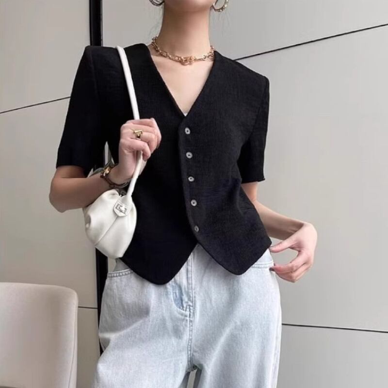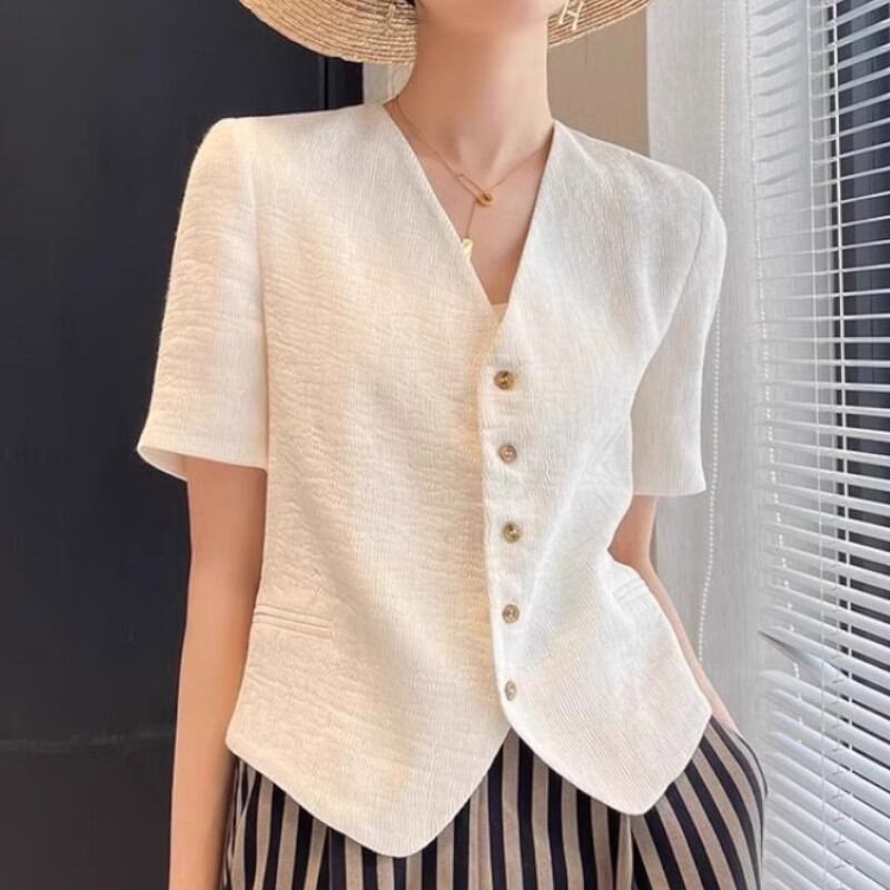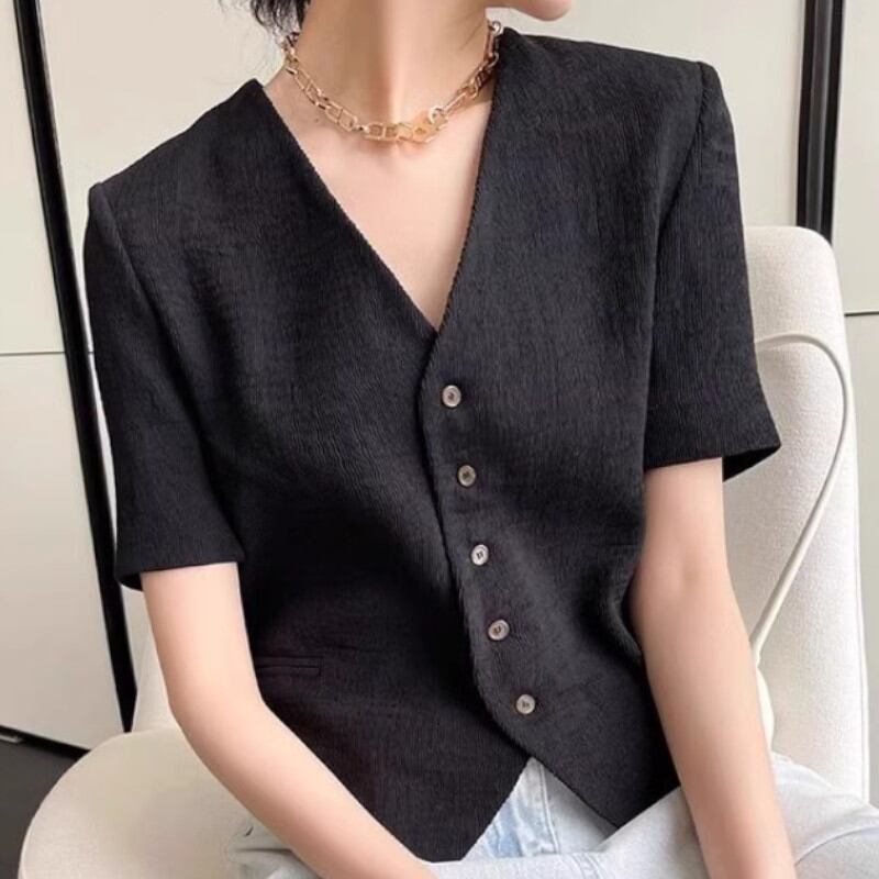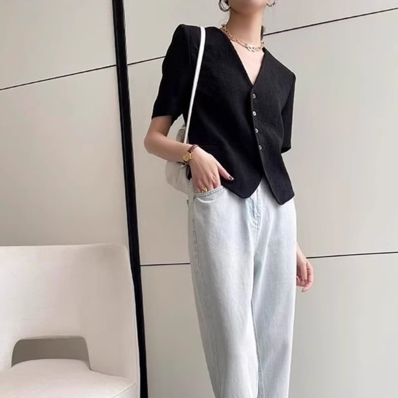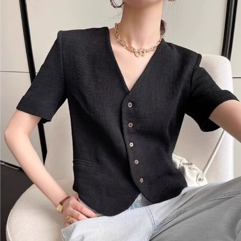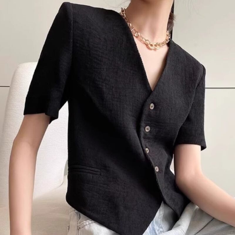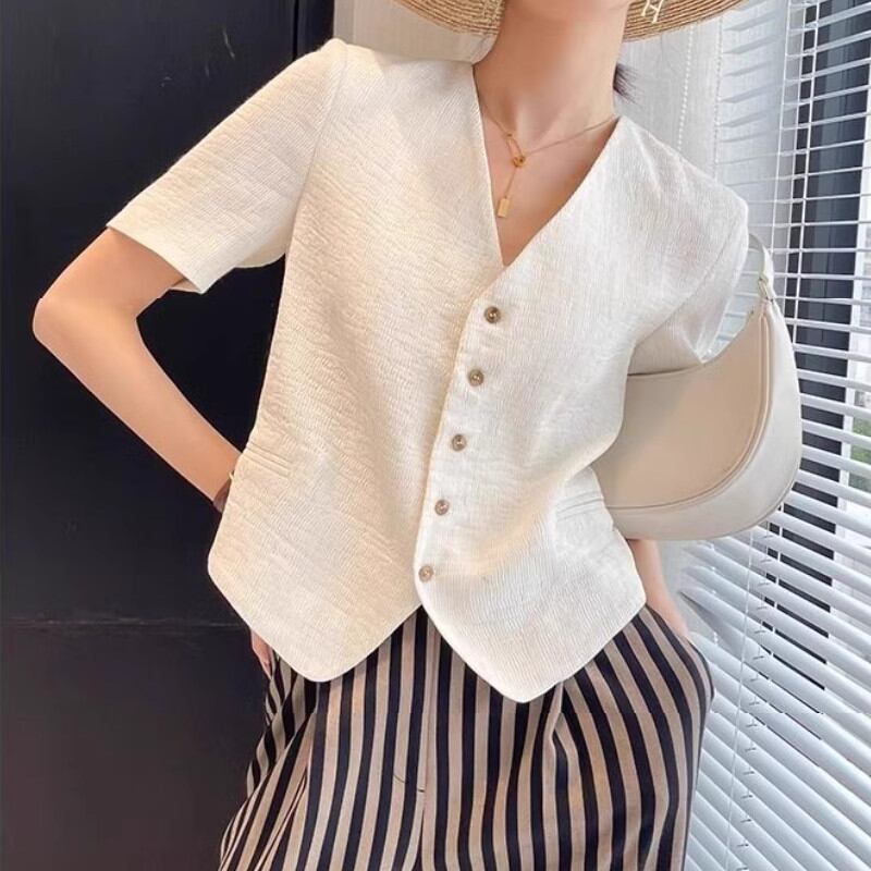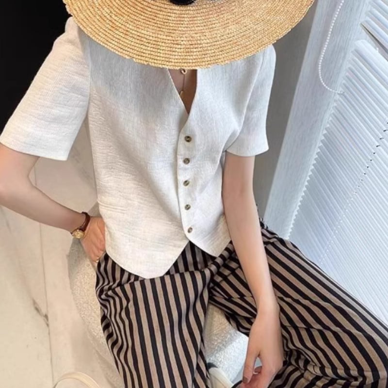シンプルでスタイリッシュなデザインが特徴のVネックハーフスリーブシャツ。 端正なV字のネックラインが女性らしさを引き立て、ハーフスリーブで腕を華奢に見せてくれます。 ブラックとホワイトの2色展開なので、様々なコーディネートに合わせやすく活躍してくれます。 《カラー》 ブラック、ホワイト 《サイズ》 S:肩幅36cm 胸囲88cm 着丈54cm 袖丈24cm M:肩幅37cm 胸囲92cm 着丈55cm 袖丈25cm L:肩幅38cm 胸囲96cm 着丈56cm 袖丈26cm XL:肩幅39cm 胸囲100cm 着丈57cm 袖丈27cm ※採寸方法により1~3cmの誤差がある場合がございます。 ◇人気のおすすめアイテムをもっと見る https://shop.harmonique.net/categories/5911182 ◇商品を購入する前にこちらの【ご購入前に必ずお読みください】をご確認の上お買い求めください。 https://shop.harmonique.net/blog/2024/06/25/010751 《注意事項》 *harmoniqueではお客様からのご注文を受け、お客様の商品を製作・取り寄せしております。 *基本的にお取り寄せ商品となるため、発送までに《1~3週間前後》お時間をいただいております。 *ご覧いただいているPCやスマートフォンの画面により実物と多少色合いが異なる場合がございます。 *イメージ違いやサイズ違い等、その他お客様都合によりますキャンセル・返品交換はご遠慮ください。 トップページはこちら https://shop.harmonique.net/